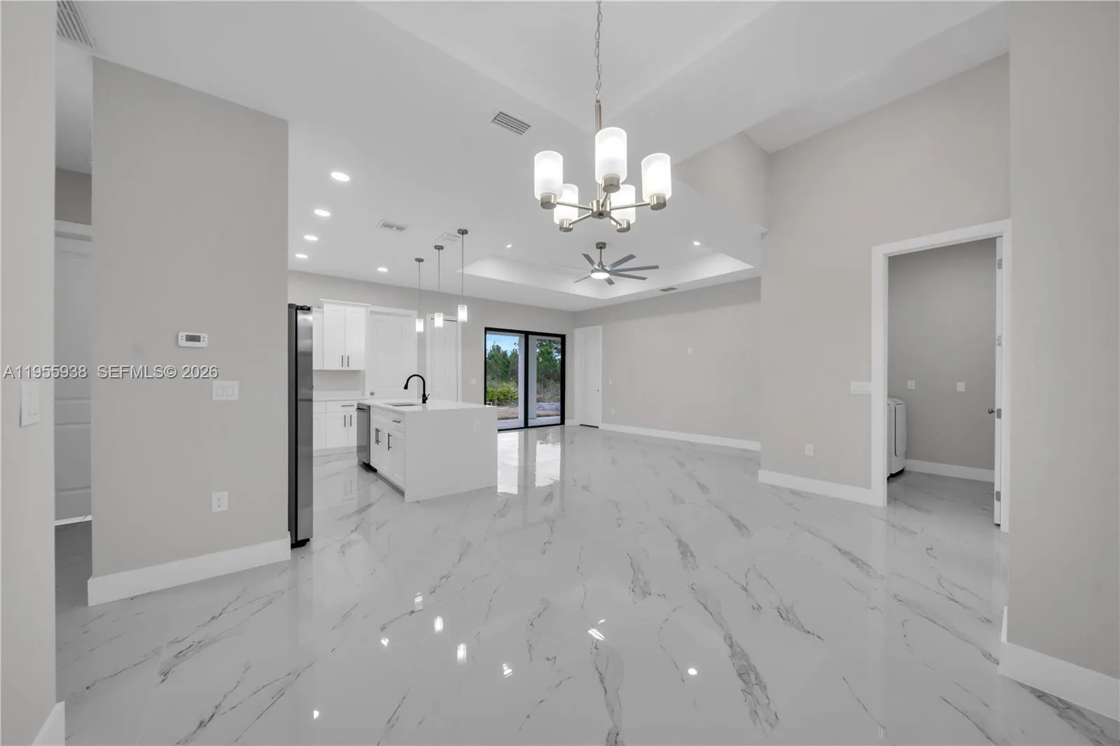 THIS HOME IS TRULY A MUST SEE! — PLUS THE SELLER IS OFFERING $15,000 TOWARD BUYER CLOSING COSTS! Welcome to this stunning BRAND-NEW CONSTRUCTION home nestled in a quiet, friendly neighborhood in Lehigh Acres—where modern design meets everyday comfort. Offering 1,568 SQFT of thoughtfully planned living space, this home features 3 BEDROOMS plus a versatile DEN and 2.5 BATHROOMS, perfect for today’s lifestyle. The OPEN-CONCEPT KITCHEN is the heart of the home, showcasing GRANITE COUNTERTOPS, STAINLESS STEEL APPLIANCES, a spacious PANTRY, and an ideal layout for entertaining or casual family meals. Granite countertops continue throughout the bathrooms and laundry room, creating a clean, cohesive, upscale feel. The LAUNDRY ROOM INCLUDES CABINETRY AND A WASHER & DRYER, making move-in effortless. The primary suite offers DUAL CLOSETS, while the DEN/OFFICE FEATURES ITS OWN HALF BATHROOM WITH DIRECT ACCESS TO THE EXTENDED LANAI—ideal for a home office, guest suite, or private retreat. With quality finishes, smart design, the PEACE OF MIND of new construction, and THE ADDED BENEFIT OF NOT BEING IN A FLOOD ZONE, this home is 100% MOVE-IN READY AND BUILT TO IMPRESS. SCHEDULE YOUR PRIVATE SHOWING TODAY BEFORE IT’S GONE!