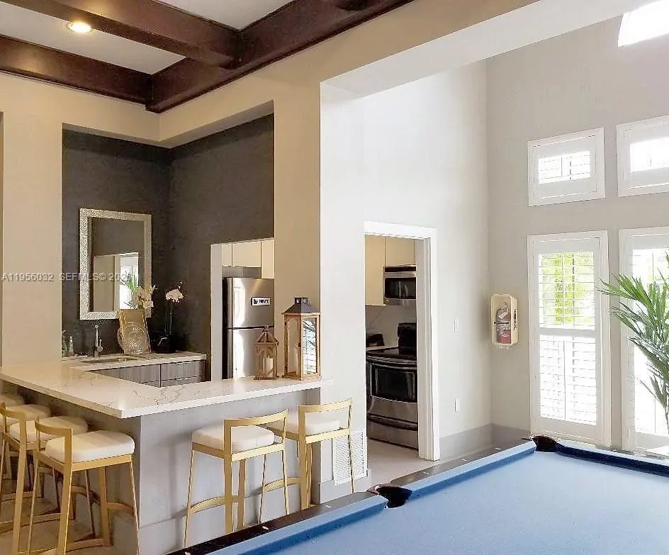 Ready to Move In! Spacious and modern 2 Bed/2 Bath condo with a desirable split floor plan in a building with only 4 units per floor. Features include an open living and dining area, laminated wood flooring, high ceilings, and a contemporary kitchen with granite countertops, quality cabinetry, and stainless steel appliances. Upgraded bathrooms with granite tops. Full-size washer and dryer inside the unit. Enjoy a screened balcony with views of the gardens and pool. Large primary bedroom with a walk-in closet. Community offers resort-style amenities including one assigned parking plus guest parking available, BBQ/picnic areas, beach volleyball, business center, clubhouse, controlled access/gated entry, fitness center with free weights, on-site management and maintenance, recycling, sundeck, and walking/jogging trails. Conveniently located near shopping, dining, excellent schools, parks, The Hammocks, Baptist West Hospital, and Tamiami Airport. Available March 01, 2026