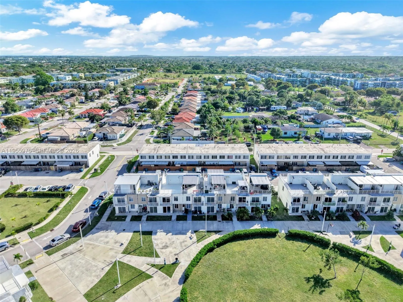 Modern and spacious townhome located in the growing Homestead area, offering an open-concept layout filled with natural light, elegant porcelain tile flooring on the main level, and contemporary finishes throughout. The sleek kitchen features quartz countertops, dark wood cabinetry, stainless steel appliances, and a large center island that flows seamlessly into the living and dining areas. Upstairs offers well-sized bedrooms with wood-look flooring, modern bathrooms with designer tile showers and upgraded vanities, private balconies, and excellent closet space. The highlight of the home is the expansive private rooftop terrace, ideal for entertaining, outdoor dining, or relaxing under the Florida sun. Impact windows and doors, energy-efficient lighting, and a concrete structure provide durability and peace of mind. One bedroom is currently rented, making this property an excellent opportunity for investors seeking immediate income, while still maintaining flexibility for future owner occupancy. Located in a newer community with low HOA and convenient access to schools, shopping, dining, Florida’s Turnpike, US-1, Homestead Air Reserve Base, and the Florida Keys, this home combines modern design, income potential, and strong long-term value in one of South Florida’s fastest-growing markets.
