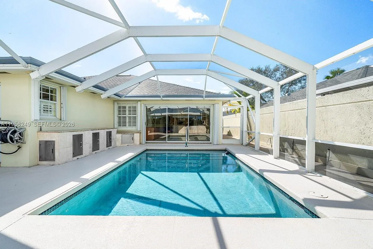 Welcome to your South Florida retreat in the desirable Greenbrier community of Jupiter! This beautiful 2-bedroom, 2-bath townhouse blends comfort, style, and the best of Florida living. Illuminated walkways lead you to a spacious extended patio and pool deck, complete with a custom outdoor kitchen featuring granite countertops, stainless appliances and grill, ample storage, a weatherproof flatscreen TV, and an automated Arcadia louvered roofing system for adjustable sun or shade. Enjoy your heated pool year-round while taking in the serene lake and golf course views. The community offers fantastic amenities including a pool, tennis and pickleball courts. Golfing available just moments from your door. Located close to top-rated A+ schools, incredible restaurants, shopping, nature trails, and the Atlantic Ocean and beaches, this home combines luxury with convenience. Don’t miss the chance to live where others vacation—schedule your private showing today!