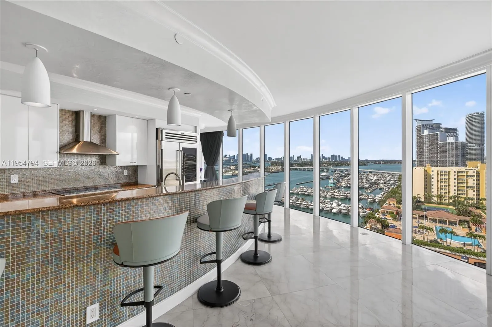 A rare opportunity to own a coveted corner 01 line residence at Murano at Portofino in the highly sought after South of Fifth neighborhood, offering 3,365 square feet of refined living space and two oversized terraces with breathtaking sunsets over Biscayne Bay and the Miami skyline, along with sunrises over the ocean and views of iconic South Beach. Luxury design details include a private elevator foyer, floor-to-ceiling glass, Venetian plaster walls, motorized window coverings, and a chef’s kitchen with Miele and Sub-Zero appliances. The oversized primary suite is a true retreat with sweeping water views, two custom walk-in closets, and ensuite dual primary bathrooms featuring exquisite book-matched marble. World-class amenities include full-service concierge, heated pools, two-story fitness center, sauna, private beach club with golf cart service, and a soon-to-be-added pickleball, padel, and tennis racquet club. Located on the southern tip of South Beach, moments from the city’s finest dining, shopping, marina, and South Pointe Park.