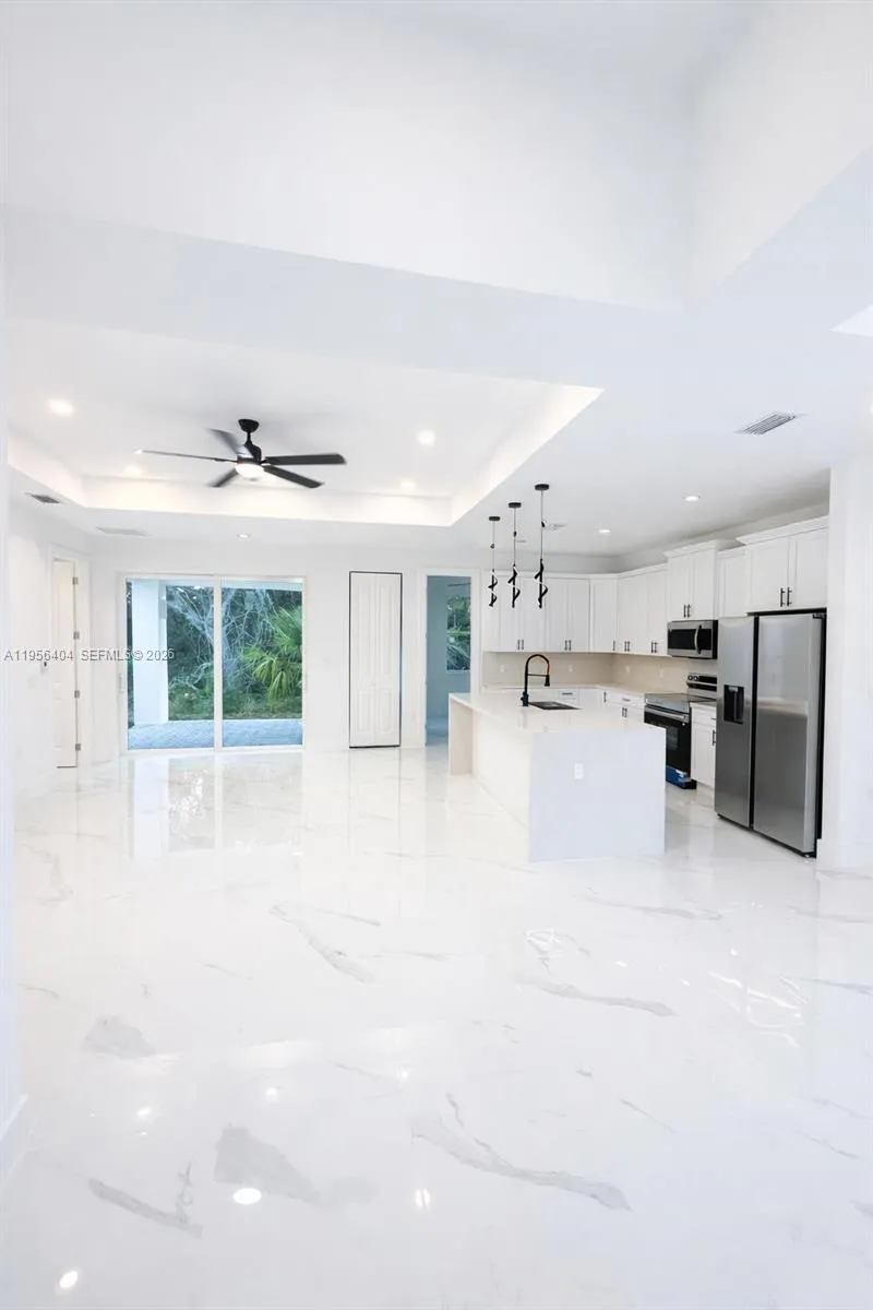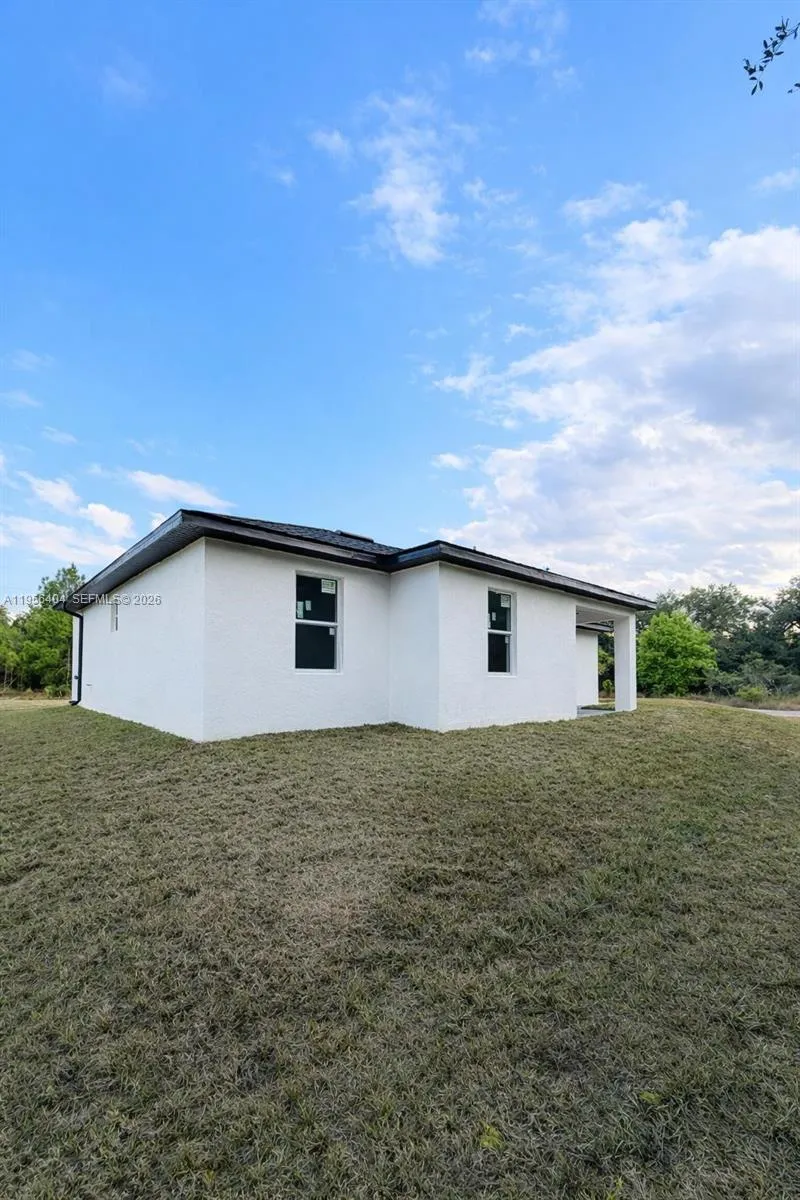 Step into contemporary living with this newly constructed 4-bedroom, 3-bathroom single-family home, completed in 2025 and situated on a generous corner lot in one of Lehigh Acres’ most sought-after neighborhoods. Spanning 2,021 sq. ft. on a 0.25-acre lot, this residence blends modern design with everyday comfort. Features include high ceilings, stylish tile floors, luxurious bathrooms, quartz countertops, and stainless-steel appliances. The open floor plan seamlessly connects to the outdoor area, perfect for hosting barbecues or adding a pool. Ready for immediate move-in and built for today’s lifestyle, this home offers a remarkable opportunity you won’t want to miss!