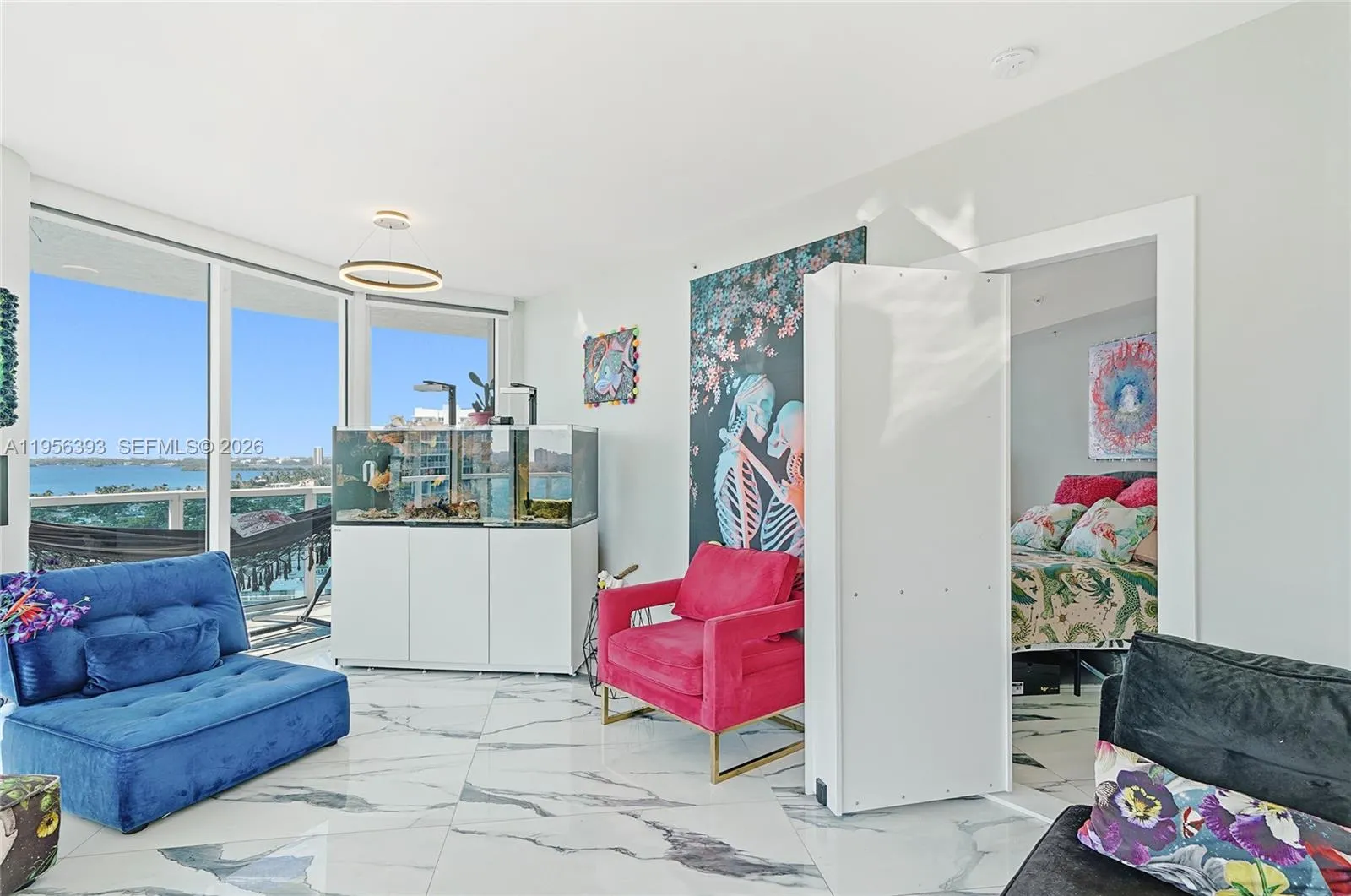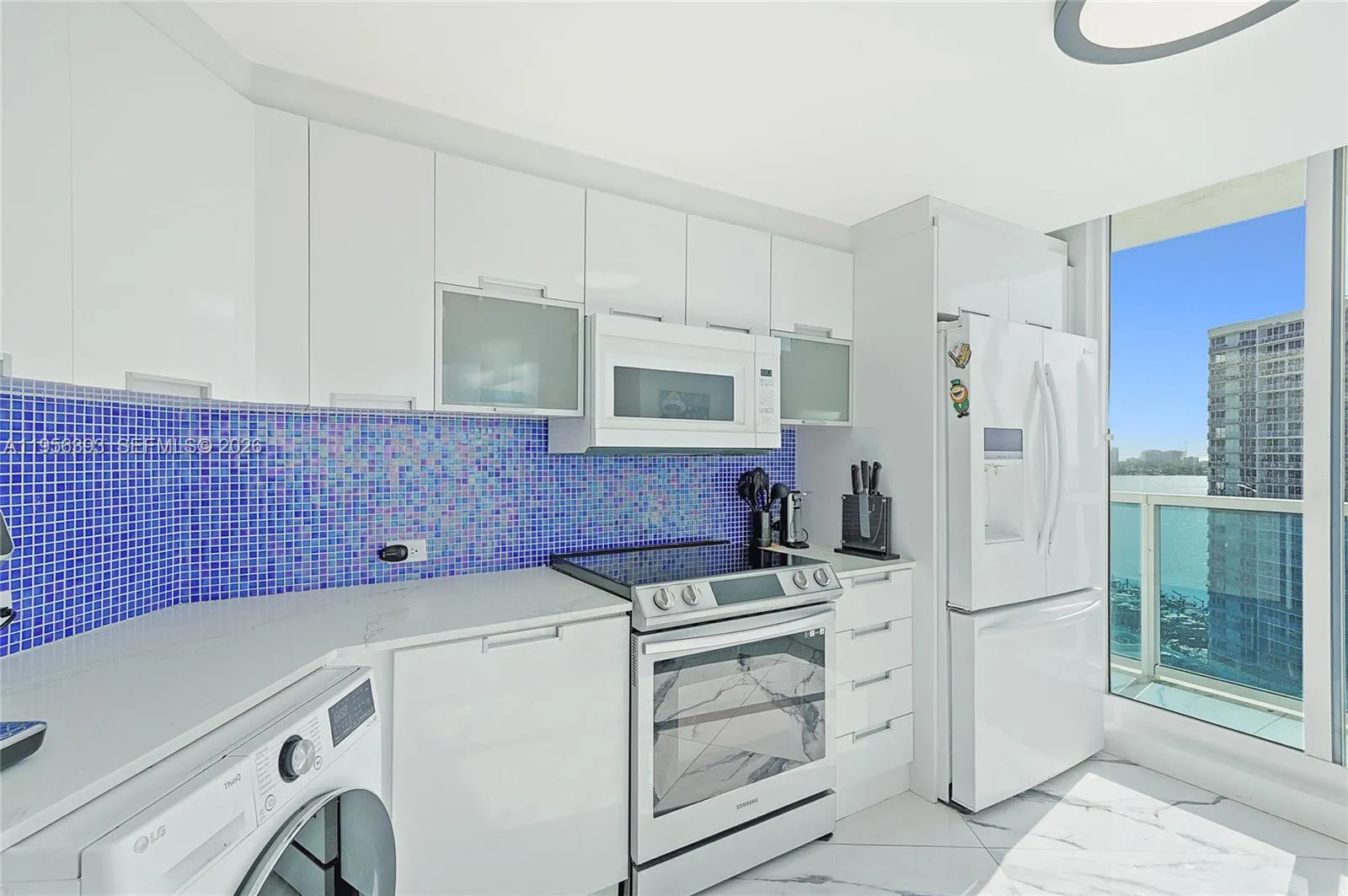 Absolutely spectacular. Electrifying 180 degree views spanning the sparkling Miami Beach skyline and the Downtown Miami and Brickell skylines with the blue waters of Biscayne Bay and the magical nightlights of North Bay Village in between. These views are utterly exceptional. The unit is a 5-star renovated masterpiece. Blanketed in Italian porcelain floors and framed by floor to ceiling impact glass throughout, the interior is drenched in sunlight and sports every imaginable upgrade. Electric blinds on all doors and windows, floating Madeli vanities, high gloss imported cabinetry, a gorgeous waterfall quartz breakfast bar and a wide open kitchen perfect for entertaining curate a refined lifestyle. This unit hits every note. The world-renowned Bridgewater is a full-service highrise with a sprawling waterfront pool, jacuzzi, BBQ and outdoor dining deck, a fantastic fitness center, 24/7 doorman, assigned, gated parking and internet and cable tv included in the dues. The neighborhood is on the precipice of a boom. The Continuum, Shoma Bay, The Pagani, the brand new Publix, The Sunbeam project and more than 700k sq ft of commercial space is underway. North Bay Village is currently one of the hottest markets in the entire world. Now is the time to get in. This unit, at this price, is unmatched. Call today, extremely easy to show and will go fast.