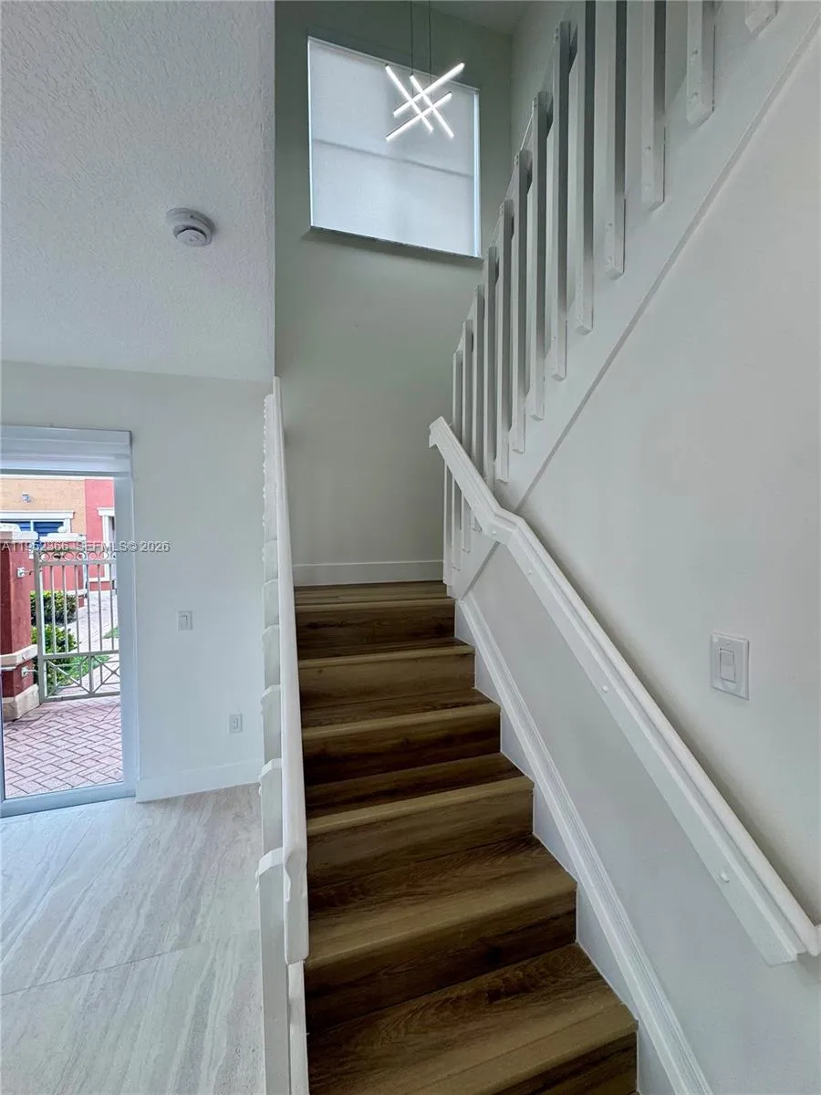Discover this beautifully updated 3-bedroom, 2.5-bathroom townhouse overlooking a scenic community courtyard at The Gates of Doral. The home features a sleek, brand-new kitchen equipped with premium stainless steel appliances and ample storage next to a first floor half bathroom. On the second floor you will enjoy the master bedroom that offers a quiet retreat with a private en-suite bathroom and generous closet space, and two additional bedrooms that share a bathroom. Throughout the interior, you’ll find upgraded LED lighting and a spacious living area that opens directly onto a private side patio—perfect for morning coffee. Brand new zebra shades in the living areas and blackout shades in the bedrooms, smart home nest thermostat, and brand new impact windows and doors provide a comfortable environment. Additional functional highlights include a dedicated laundry closet with a modern washer/dryer, one assigned parking space and one additional guest parking. Located in a secure gated community with a pool and playground, you are just minutes from top-rated schools, lush parks, and easy access to the Florida Turnpike.