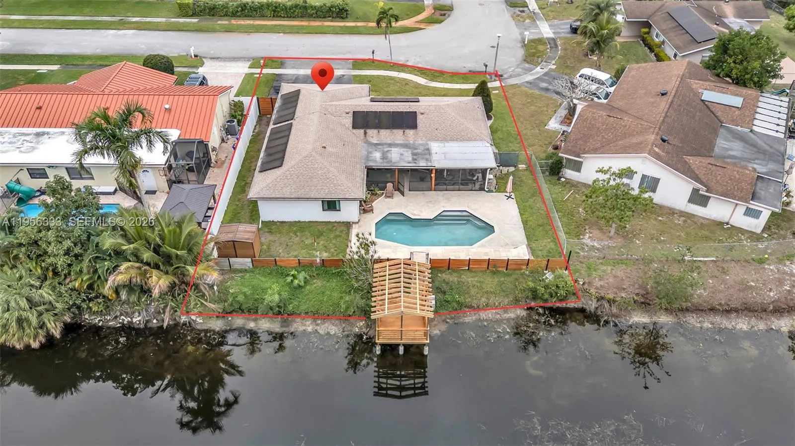 TRUE PRIDE OF OWNERSHIP! MOVE-IN READY HOME AWAITS ITS NEW OWNERS! THIS 3/2 SPLIT PLAN, POOL HOME HAS IT ALL! UPDATED BATHROOMS, NEWER SS KITCHEN APPLIANCES, ROOF, A/C, TANKLESS WATER HEATER AND ELECTRICAL PANEL JUST TO NAME A FEW OF THE MANY IMPROVEMENTS MADE TO THIS HOME. FULLY HURRICANE PROTECTED WITH IMPACT WINDOWS AND DOORS FOR PEACE OF MIND. TONS OF NATURAL LIGHT THROUGHOUT THIS SPACIOUS HOME. SOLAR PANELS WITH BACK-UP BATTERY. FULLY FENCED YARD WITH A SHED FOR EXTRA STORAGE. THIS HOME, THE ONLY ONE IN THE NEIGHBORHOOD HAS A BRAND-NEW CUSTOM DOCK. LOADS OF OPTIONS FOR OUTDOOR ENJOYMENT! HUGE SCREENED/COVERED PATIO, EXTENDED POOL DECK AND LARGE DOCK, PERFECT FOR ENTERTAINING! NEWER SPRINKLER AND POOL PUMP. GARAGE HAS PEBBLETECH FLOOR, IS INSULATED AND OFFERS A SPLIT A/C. WALK IN CLOSETS HAVE CUSTOM CABINETRY. MASSIVE UTILITY ROOM WITH NEWER WASHER/DRYER, CHEST FREEZER AND LAUNDRY SINK. RING DOORBELL/CAMERA. NO POPCORN CEILINGS AND NO CARPET. CENTRALLY LOCATED, CLOSE TO SCHOOLS, SHOPPING, EATERIES, PARKS AND SO MUCH MORE! NO HOA. COME CHECK THIS BEAUTY OUT BEFORE IT’S GONE!