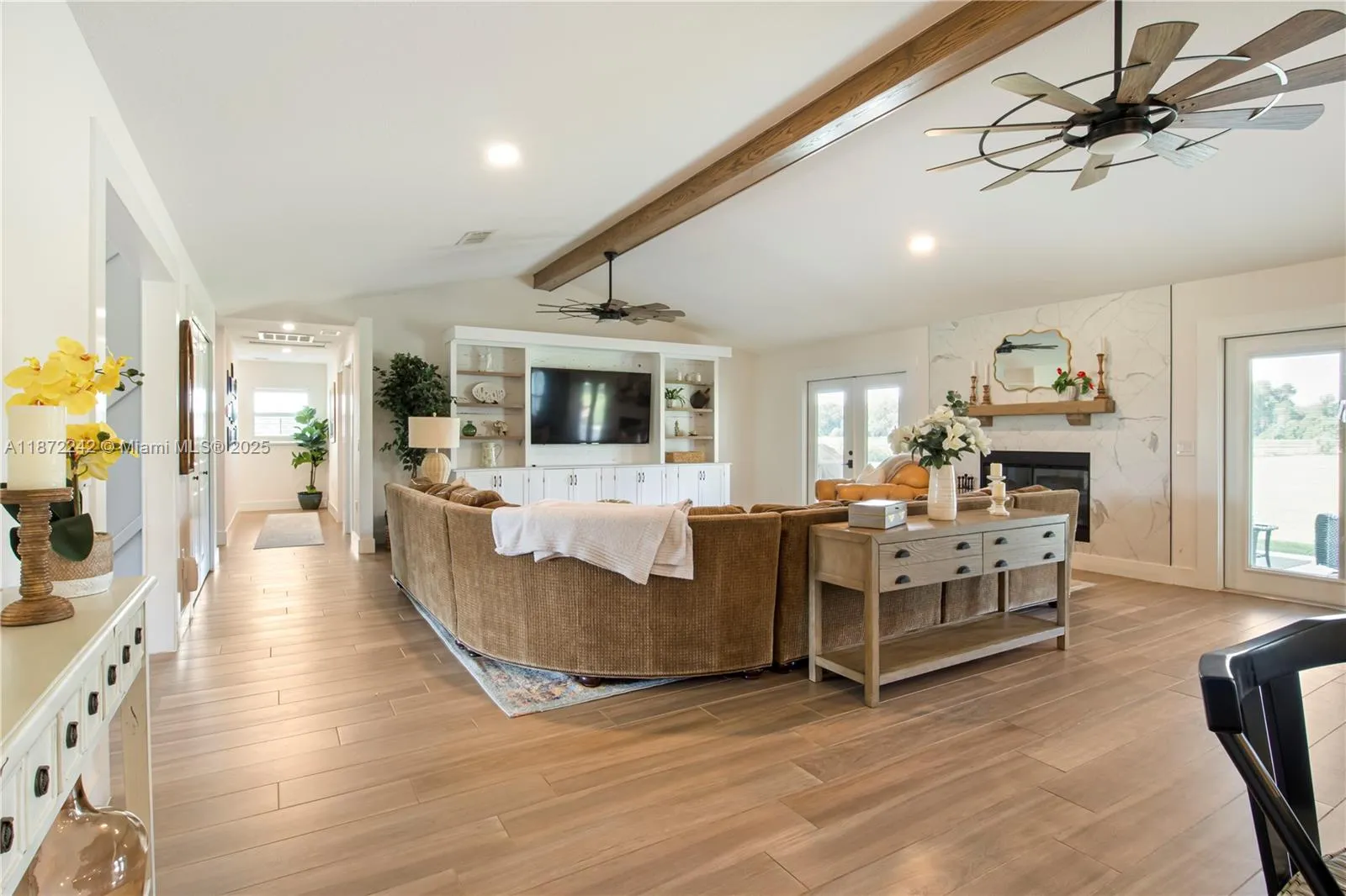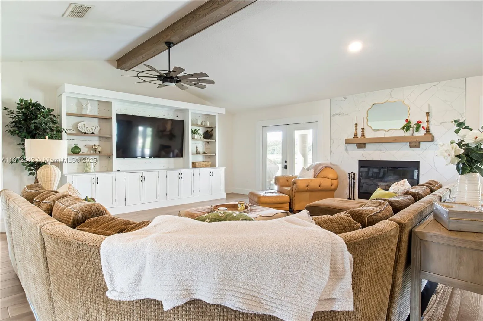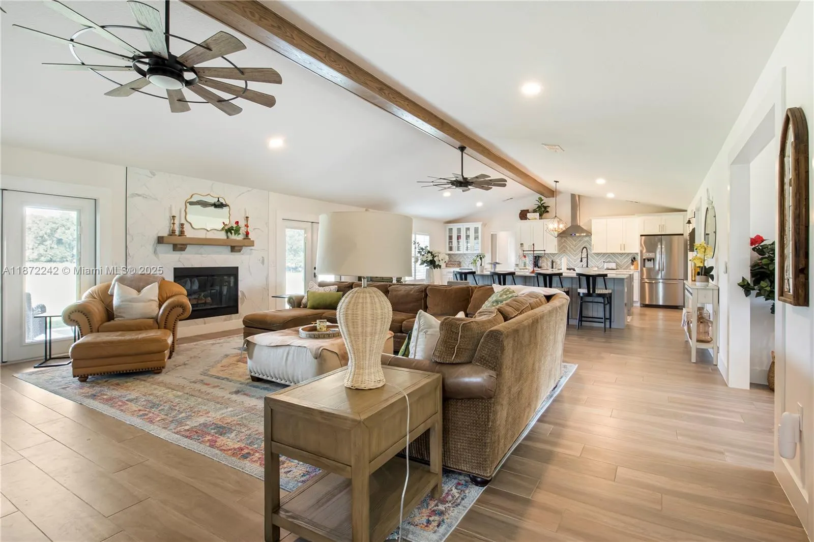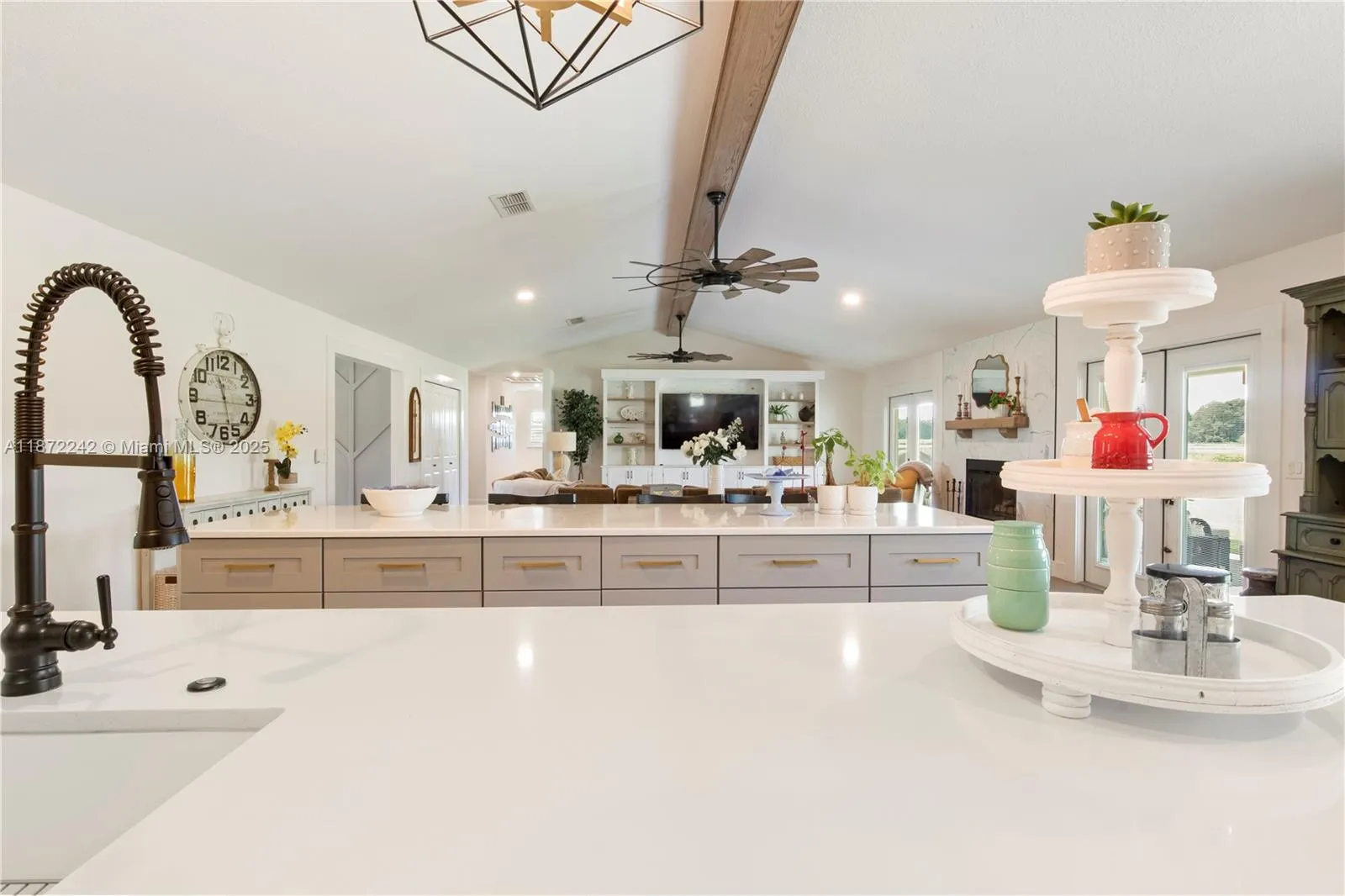 • Interior Features: Bedroom on Main Level, First Floor Entry, Closet Cabinetry, French Door(s)/Atrium Door(s), Walk-In Closet(s), Kitchen Island, Pantry, Main Level Primary, Fireplace, Attic