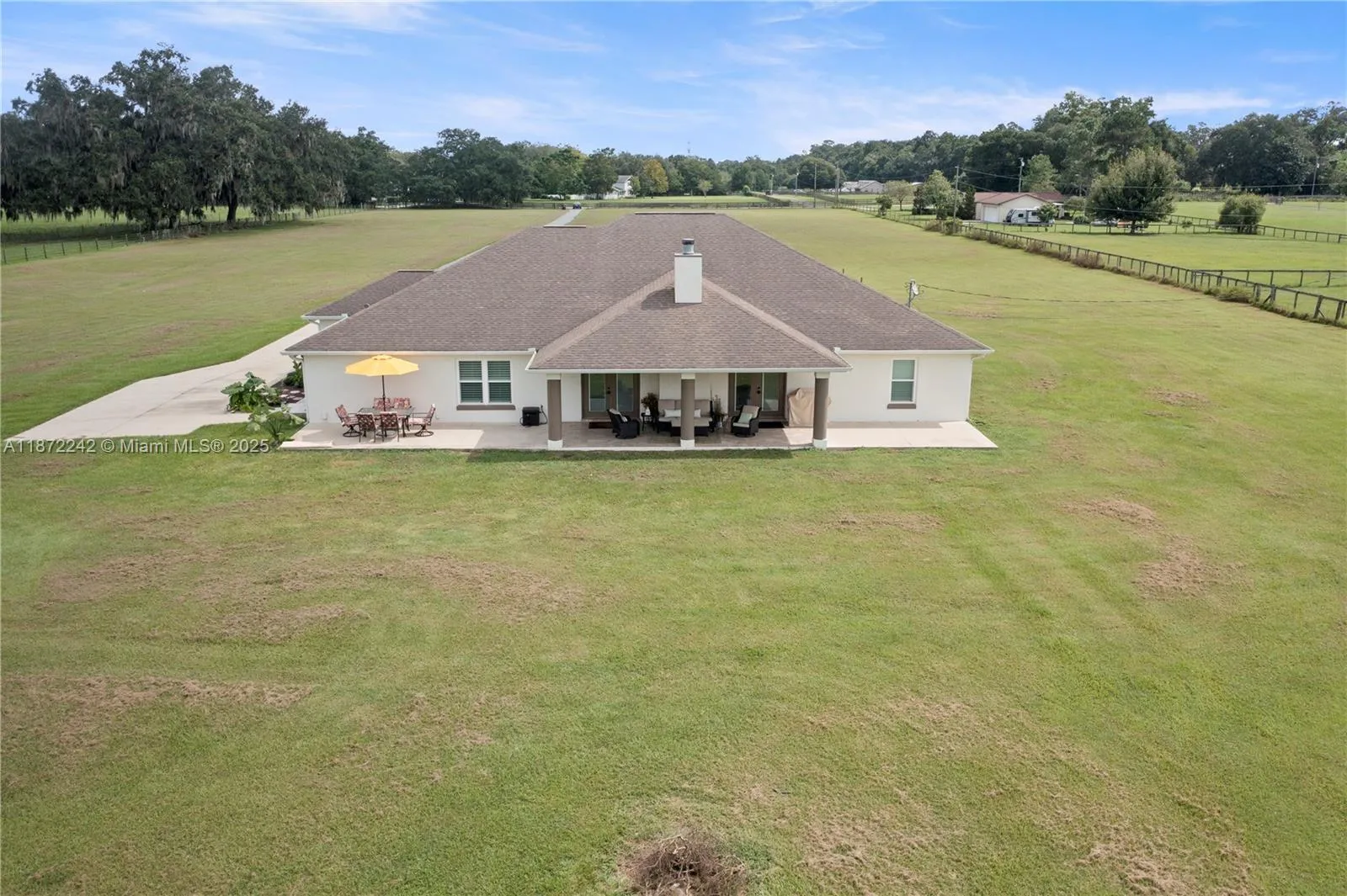 This impeccable high-end design on 10.01 acres awaits your occupancy. Conveniently located close to shopping, dining, and interstate access and only minutes away from The Villages and The Florida Horse Park. This home features an open floor plan with close to 3500 sq ft of living space, 4 over-sized bedrooms with huge closets, 4 stunning bathrooms, large dining room, tons of room to entertain, gorgeous kitchen with huge double islands, functional laundry room and pantry, and so much more. Take advantage of this rare opportunity today! The house is priced competitively and seller is motivated. There were countless additions and upgrades put into the house over the last 3 years, so please do not hesitate to reach out and ask about these upgrades. Schedule a showing today!