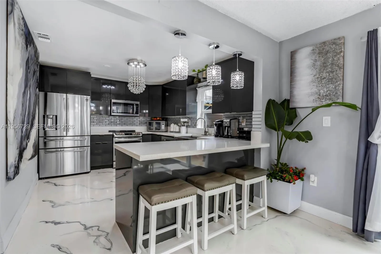 Step into this beautifully remodeled 4-bedroom, 2-bathroom lakefront home offering stunning water views and a tranquil gazebo, ideal for relaxing or entertaining. This move-in-ready residence features impact windows and doors, brand-new A/C, and a new water heater for comfort and peace of mind. The bright, open layout showcases new flooring throughout and abundant natural light. The modern kitchen is finished with stainless steel appliances and sleek cabinetry, while spacious bedrooms provide plenty of room to unwind. A conveniently located first-floor bedroom adds flexibility for guests, a home office, or multigenerational living. Residents enjoy access to community amenities including a clubhouse, pool, playground, and basketball court, all with a low HOA. Ideally located near shopping, dining, parks, and major highways, this home is a must-see.