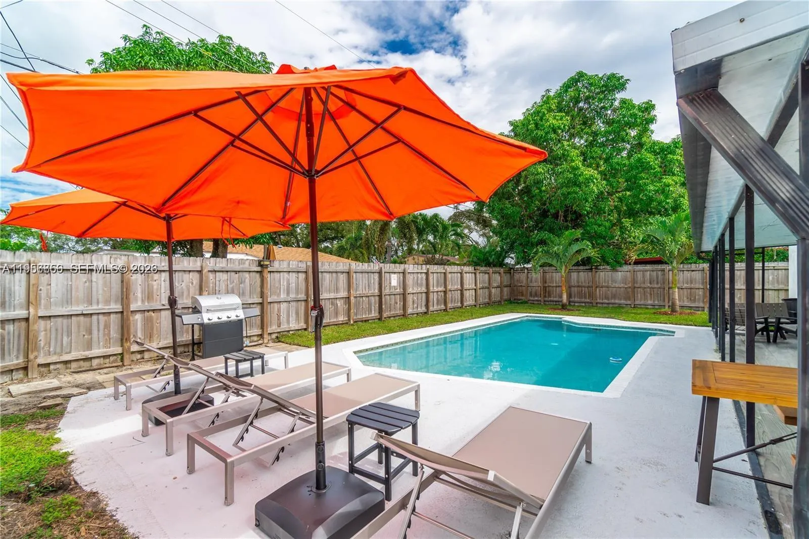 Gorgeous and fully remodeled home with 5 Bed 2 Bath, pool, and a cozy shaded front porch! Bright and ample living and dining room overlooking the pool. A large open kitchen with brand new stainless steel appliances, wine cooler, granite countertops, and plenty of pantry space. Beautiful tile flooring all around and new high-impact sliding doors and replacement windows all around. Large laundry room excellent for extra storage. Brand new roof and tankless water heater. The house is completely fenced for privacy in this ample yard. Available now fully furnished