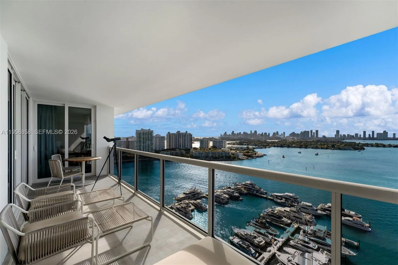 Welcome to1900 Sunset Harbour Dr. No. 2312, located in Miami Beach’s most coveted pedestrian-friendly enclave. This fully renovated 2-bedroom residence features a sprawling floorplan with two massive Bayfront suites, each framing iconic views of the Downtown Miami skyline.rnrnDesigned and furnished by a notable interior design firm, the home showcases impeccable craft, including a kitchen with imported Italian cabinetry and sleek marble countertops. Just outside find the city’s best fitness boutiques, Michelin-star dining, and high-end cafes. With breathtaking sunset views and a sophisticated, turnkey aesthetic, this is the pinnacle of modern Miami living. Your serene retreat in the heart of the action awaits. Residents of 1900 have exclusive access to all amenities including a valet parking service, fitness center and the Marina lap pool.