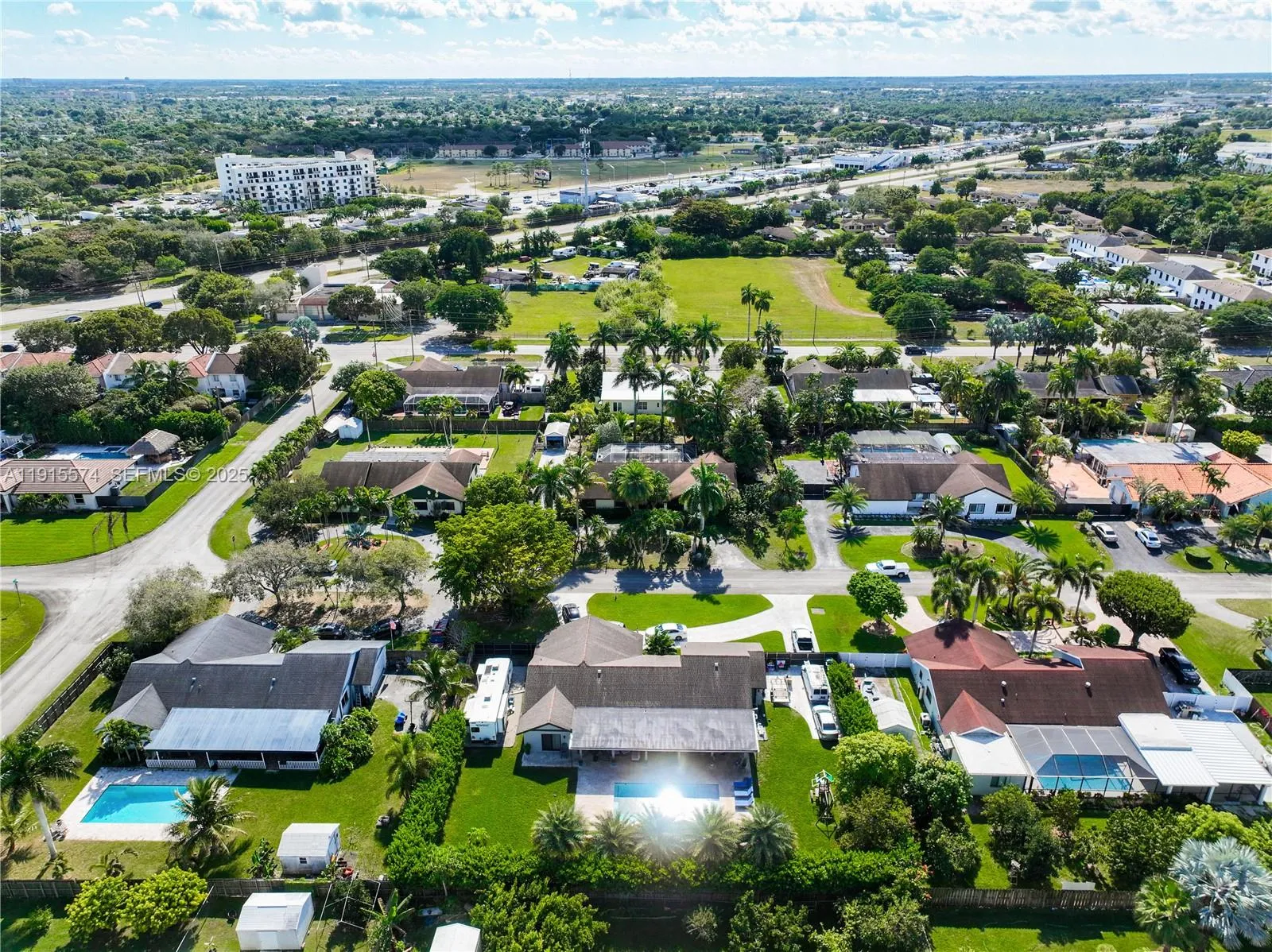 Beautifully maintained 4-bedroom, 2-bath single-family home situated on an oversized 18,720 sq. ft. lot in the desirable Cedars Estates community. This inviting property features a sparkling screened-in pool, a 2-car garage, and an extended driveway with ample space for multiple vehicles, as well as rare boat and RV parking.rnInside, enjoy spacious living, dining, and family areas perfect for entertaining. The kitchen offers abundant counter space, custom built-in cabinetry, and plenty of natural light.rnStep outside to your private tropical oasis! The fully fenced backyard is filled with fruit-bearing trees, including coconut, lychee, sugar apple, caimito, mango, longan, cherry, jackfruit, wax jambu, papaya, and pineapple plants—perfect for those who love fresh, homegrown fruit. A large storage shed adds extra convenience.rnCentrally located with easy access to Florida’s Turnpike, US-1, top-rated schools, parks, shopping, and dining. No HOA! Explore the immersive 3D virtual tour and experience this exceptional property firsthand. May the Force be with you!