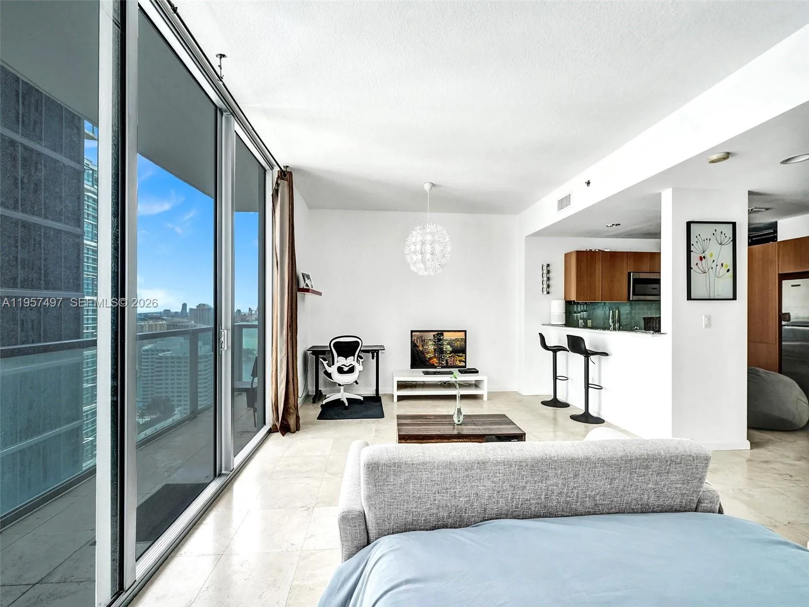 Fully furnished, spacious studio/loft located in the heart of Brickell, offering stunning city and partial water views. This modern unit features a contemporary kitchen with stainless steel appliances, granite countertops, wood cabinetry, marble floors, and floor-to-ceiling impact glass doors leading to the balcony. Washer and dryer inside the unit. Includes assigned parking and a flexible rental policy.rnrnResidents enjoy beautifully designed outdoor areas and resort-style amenities, including a state-of-the-art fitness center, swimming pool, sundeck, yoga/aerobics room, spa treatment room, game room, virtual golf, and billiards table. The building also offers 24/7 concierge, valet, and security. Prime location near Mary Brickell Village and Brickell City Centre, with direct access to a French bakery and easy access to Metro and public transportation.
