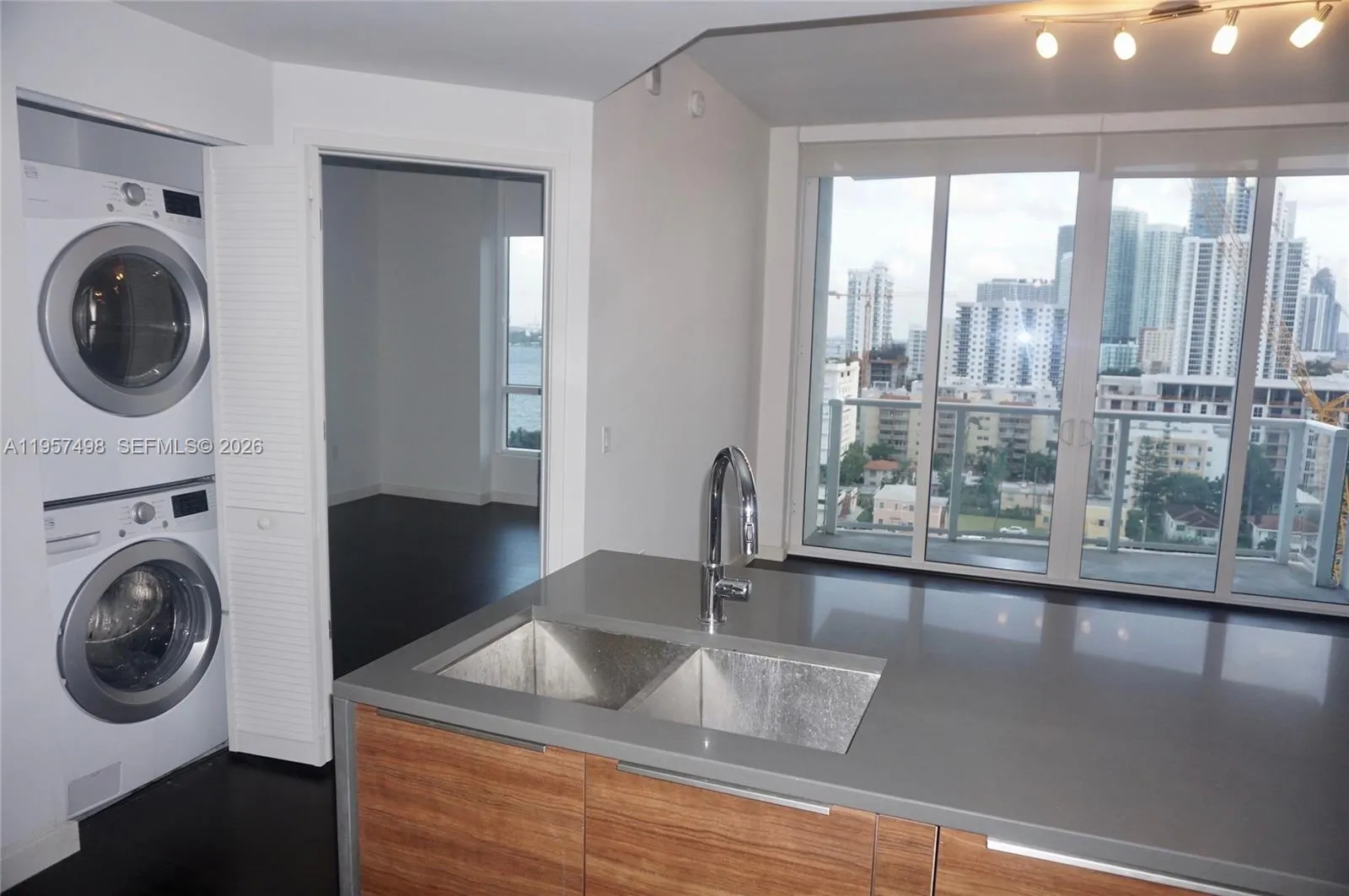 Gorgeous unit with high end luxury finishes such as bosh appliances, roller shades, marble bathrooms, spacious closets, new flooring, full size washer/dryer. Beautiful bay and city views in a LEED silver certified building with energy efficient a/c system and water heater. Enjoy this boutique style building with free electric car charging stations, pool, spa, gym, cyber cafe, social lounge and business room. Excellent location in booming Edgewater right by the intracoastal bay with a beautiful private boardwalk. Located a few minutes from Wynwood, midtown and design district for shopping and many restaurants. See broker remarks.