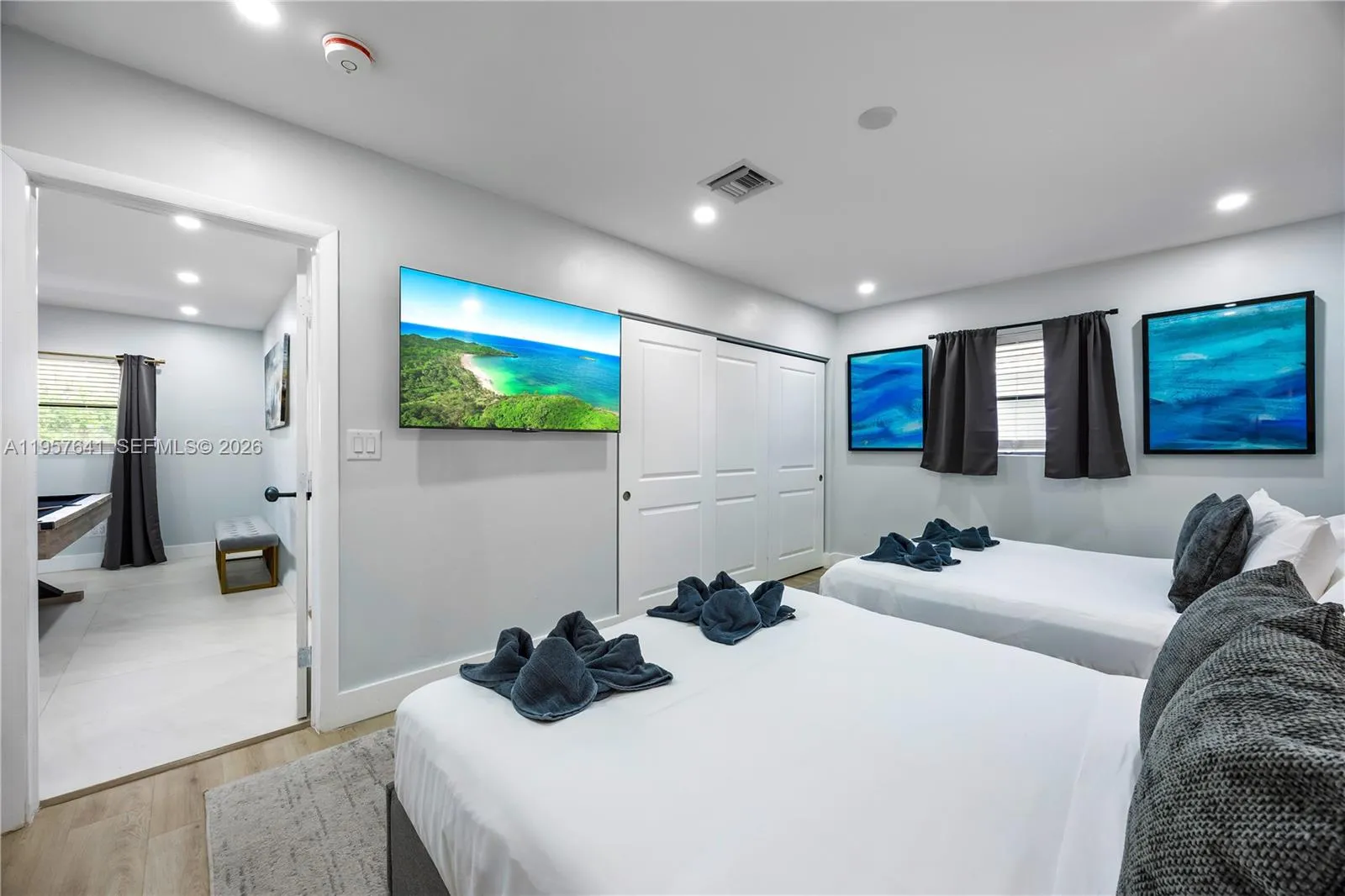 tunning 6-bedroom Pompano Beach estate offering over 5,000 square feet of beautifully designed living space—an exceptional value for a home of this size in Pompano Beach. Ideally located just a half block from the Intracoastal, this property delivers the perfect blend of luxury, space, and lifestyle.rnrnThe home features a fully renovated deck, resort-style pool, jacuzzi, outdoor bar, and outdoor shower, creating the ultimate entertaining oasis. Inside, enjoy a modern chef’s kitchen with stainless steel appliances, upgraded lighting throughout, and elegantly renovated bathrooms. Expansive porcelain flooring enhances the open, light-filled layout.rnrnStep outside to a balcony with outdoor furniture, perfect for relaxing or hosting guests. All furnishings can be purchased, making this home truly turn-key—just bring your toothbrush. A rare opportunity to own a large, move-in-ready luxury home in Pompano Beach at outstanding value.