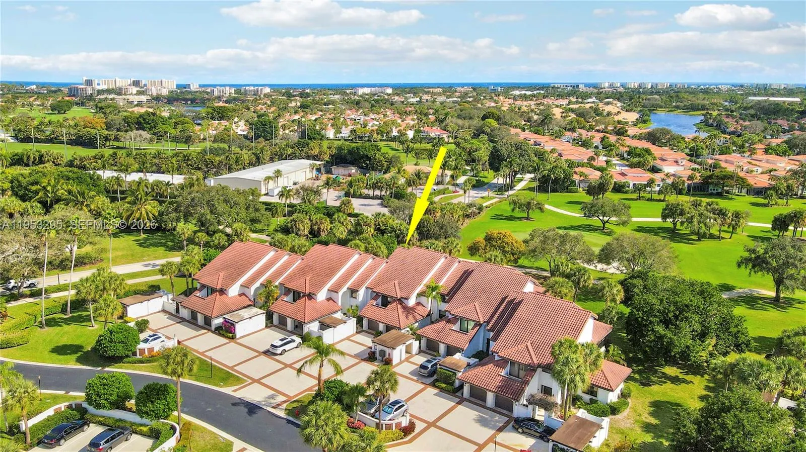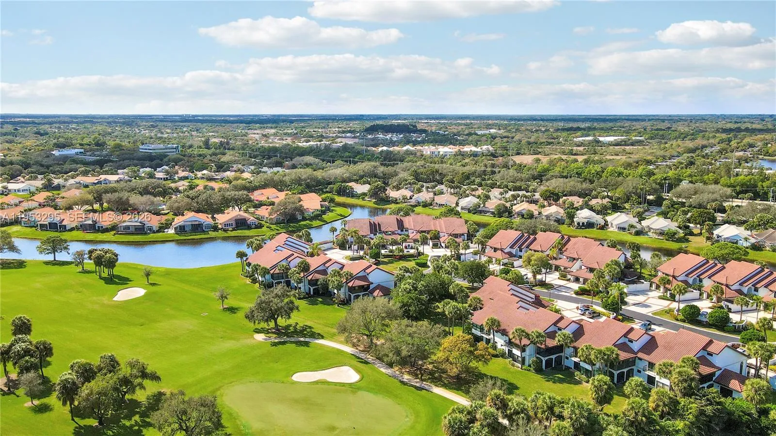 This sought after Second Floor 3 bedroom 2 bath unit in Traders Crossing S in Jonathans Landing has been nicely updated and has wonderful views of the golf course as well as the tropical landscape. Hardwood and Luxury Vinyl floors throughout coupled with the Vaulted Ceilings and Open Floor Plan make this sun filled unit a unique and desirable opportunity for the buyer looking for something special. Bright and Inviting Eat In Kitchen has newer appliances and beautiful Counter Tops. The Large Primary suite offers a well laid out Primary Bath with separate areas for privacy, large walk-in closet, and a wonderful private balcony off the Primary looking over the golf course. 2 Additional Guest Bedrooms are generously sized to accommodate a King or 2 Full/Twin Beds. One of the bedrooms can also serve as a Den/Family room with a pull out sofa instead of a bed since it has a wet bar and another large private balcony on the Back/West Side of the unit. The entry level features a warm and welcoming 2 story foyer with a wrapped staircase to the Main Level of Living as well as a storage/coat closet. The oversized One Car Garage has plenty of storage area and conveniently connects directly to the Foyer. A Golf Cart Storage Garage is directly out the Front Door and Adjacent to the garage. Additional 2 cars can fit Tandem in the Driveway leading into the garage as well as guest parking in the complex. Community Pool and Restroom Facilities are a very short walk just across the street.