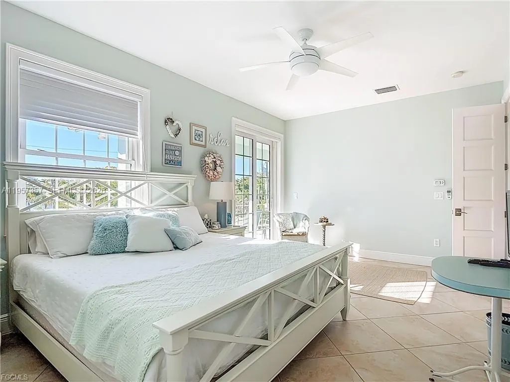 REFINED IMPERIAL RIVER LIVING WITH GULF ACCESS! Waterfront living at its finest on the Imperial River. This split-entry raised-ranch residence offers exceptional privacy, expansive water views, and direct boating access approximately one-half mile to the Gulf. Situated on approximately one-third acre, the property offers an estimated 75 feet of Imperial River frontage (+/-, subject to survey). The home features 2,005+/- square feet of living area and was built in 2015, incorporating hurricane-protection design. Construction highlights include a metal roof, hurricane-rated windows and doors, and a rip-rap seawall with a concrete cap. A low-maintenance composite dock with water and electric service is equipped with a 10,000-pound boat lift, offering durability and long-term waterfront enjoyment. The ground level features a formal entry, a full-service elevator, and a pass-through garage with front-to-rear doors leading directly to the dock. The elevator opens directly into the upper-level living area, where cathedral ceilings and abundant natural light frame sweeping river views. The kitchen is well appointed with top-of-the-line stainless steel appliances. The primary bedroom is generously sized with a private balcony, large walk-in closet with custom built-ins, and a beautiful ensuite bath featuring dual vanities and a spacious walk-in shower. The second bedroom also enjoys a private balcony and built-in closet storage. The third bedroom includes an ensuite bath.
