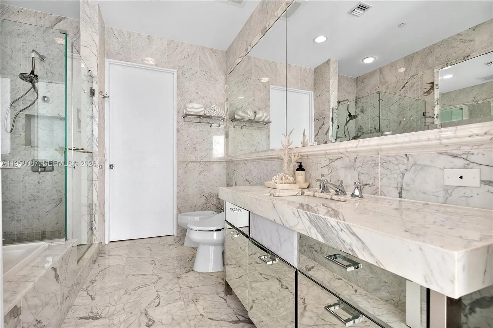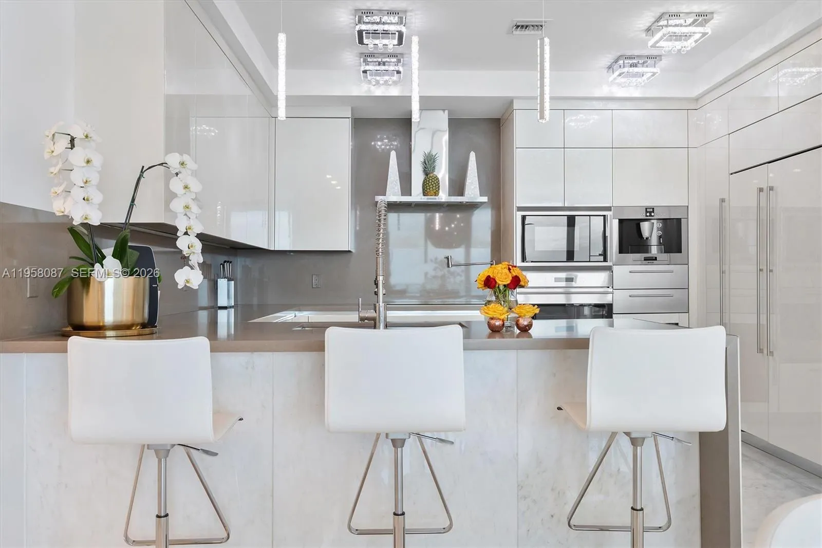Incredible protected views from this spacious 25th floor 2 bed + Den condo in the heart of Sunny Isles Beach. 11ft high ceilings 3 marble bathrooms, Wind protected balcony, Maids room with full bathroom and service entrance, 3’ x 3’ white marble floors and columns, Luxury master suite with interior glass walls. 29’ of glass in living room, Electric window treatments, Stunning Ocean, City and Park views! Designer unit! Feels a lot bigger inside than the Sq Ft shown. Must be seen! Chateau Beach is a quiet, elegant, exclusive building offering luxury & lifestyle w/ 5 Star amenities including a relaxation room w/ aromatherapy jacuzzi, Beach & Pool towel and food service, cigar room, home theatre, wine lounge, Breakfast bar, full time Concierge desk and much more. Please read Broker’s Remarks