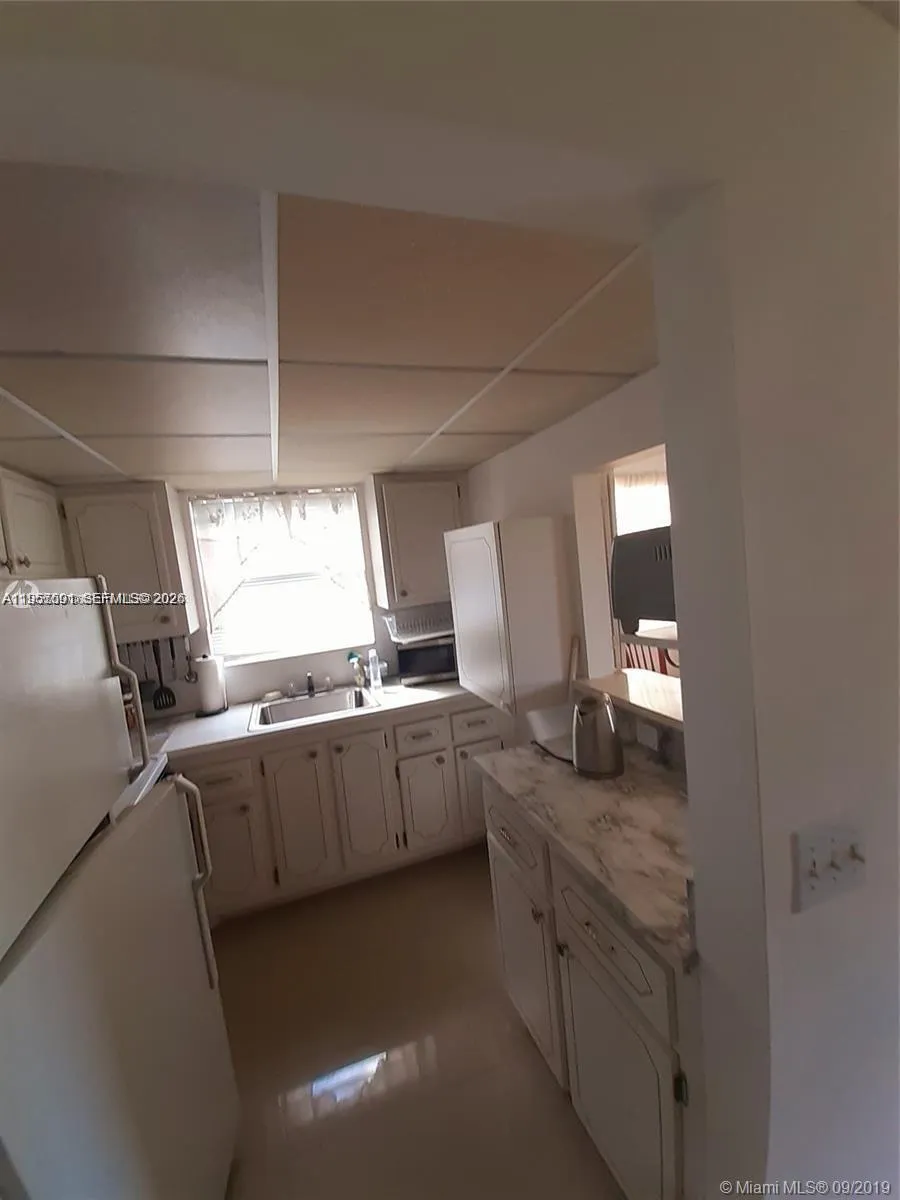 55+ Beautiful CORNER UNIT 1 bedroom and 1 1/2 bath condo in the middle of the community away from noisy roads and near the club house. Newer porcelain tile floors throughout, offered furnished turnkey as shown in the pictures. Central AC. New water heater. Well maintained building. Century Village is an active community with 13 pools, beautiful recently remodeled club house, tennis courts, biking/jogging pass, state of the art gym, theater, community shuttles, and so much more. 15 min to the beach.