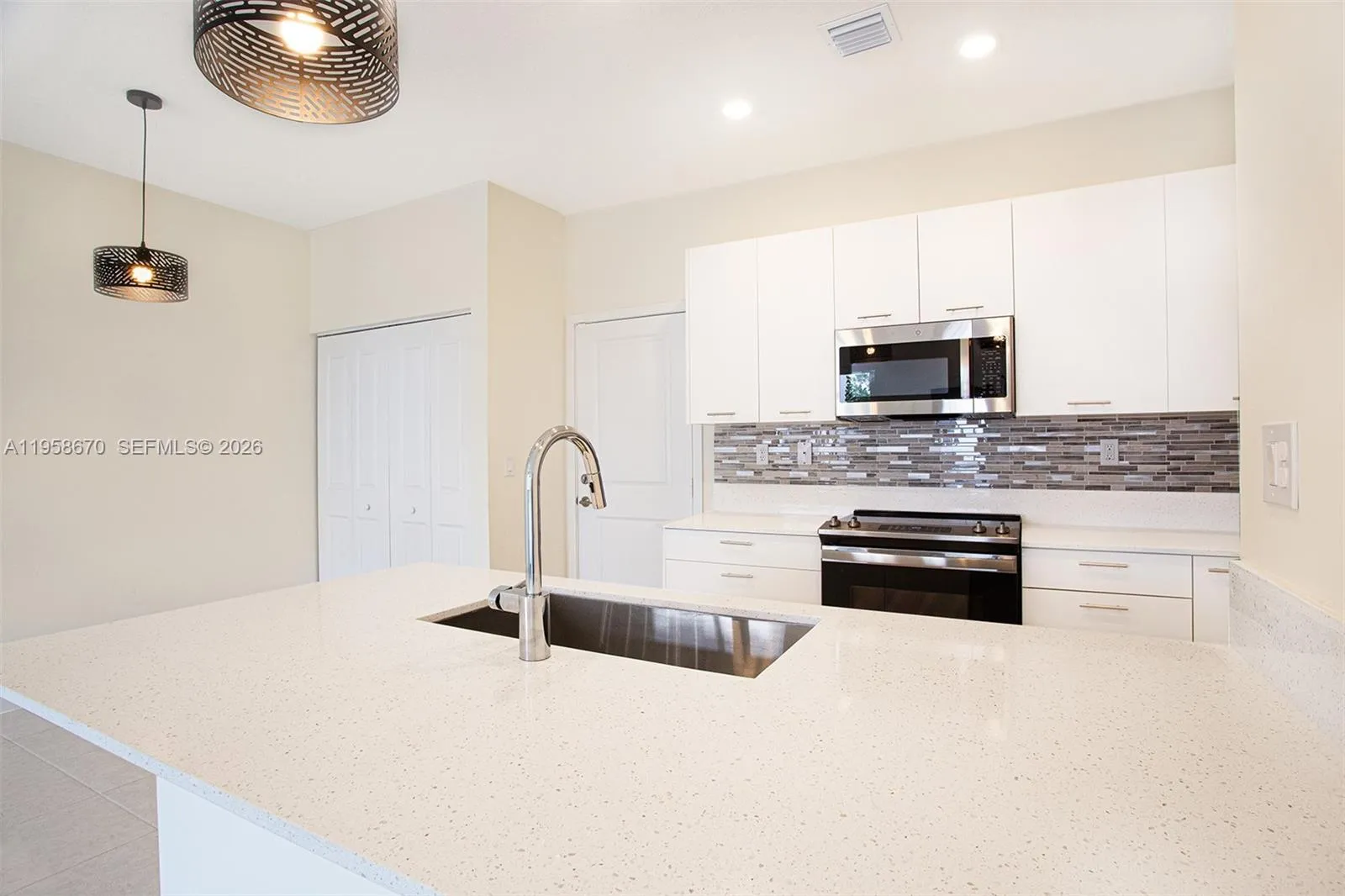 Stunning 2023-built three-level townhouse in Urbana featuring 3 bedrooms, 2 full baths, and 2 half baths, plus a covered 2-car garage. Open-concept floor plan with kitchen featuring quartz countertops & backsplash. Beautiful blinds throughout the unit. The highlight is the third floor, ideal as a playroom or entertainment area, with two private terraces. Prime location near CityPlace Doral and Choma Bazar, just 10 minutes to Miami International Airport, 15 minutes to Dolphin Mall, and approximately 27 minutes to Downtown Miami or Brickell. Located in an excellent school district. Move-in ready.