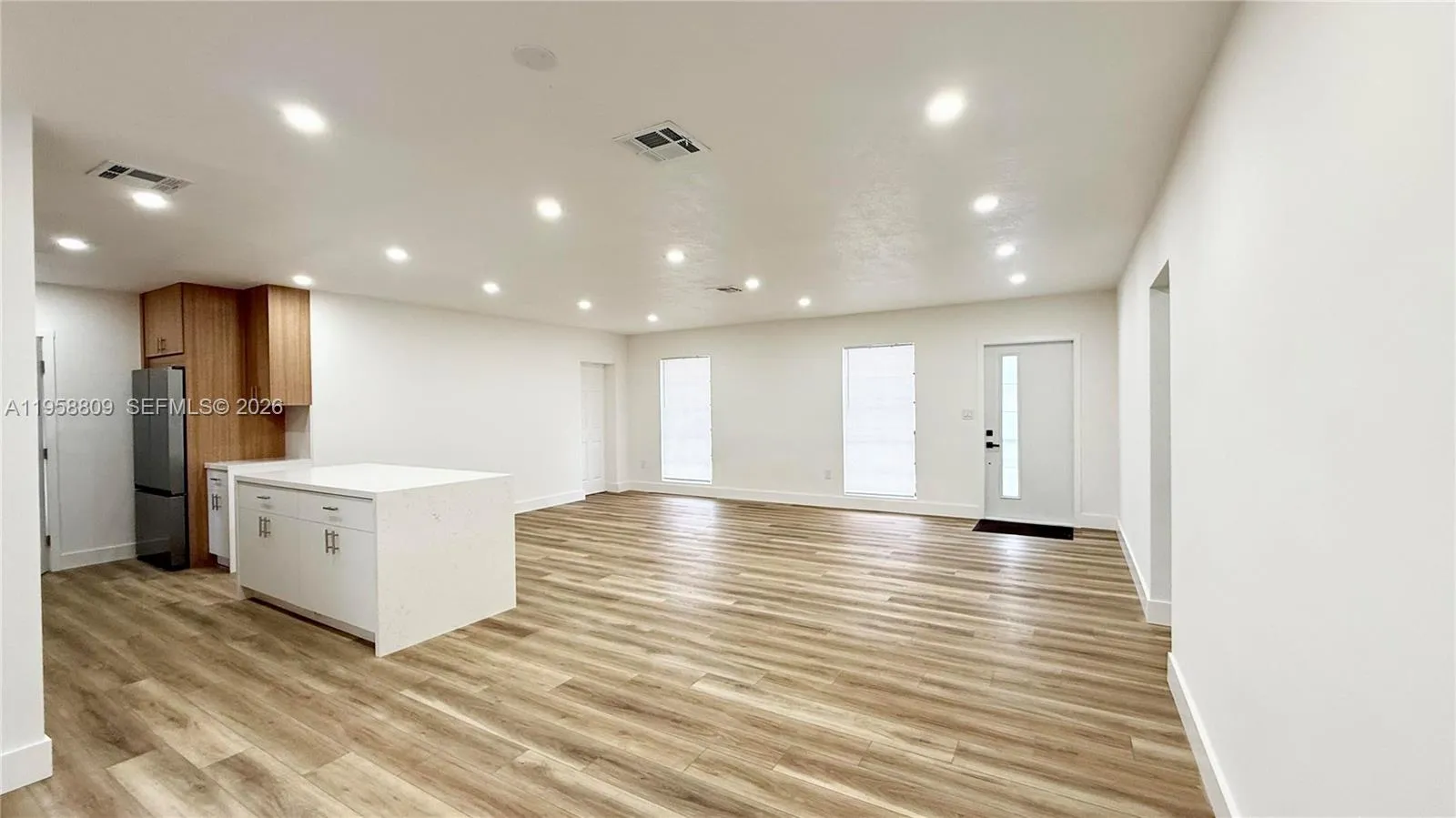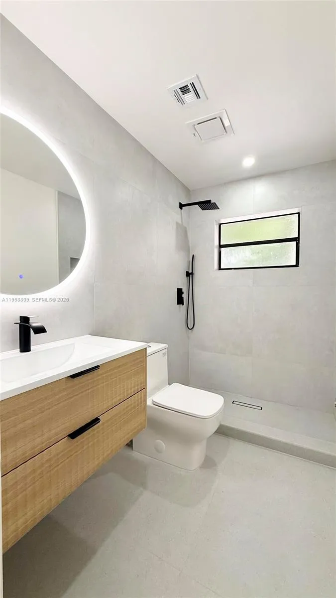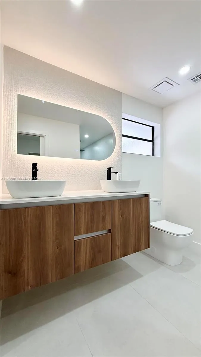 Stunning, fully renovated 4-bedroom home in a highly desirable area featuring brand-new PVC plumbing, a new roof, and a new A/C system. The open-concept living space features recessed lighting, modern flooring, and a spacious kitchen with custom cabinetry, stainless steel appliances, and an oversized island. Spa-like bathrooms showcase large-format modern tile, floating vanities, LED mirrors, and walk-in showers. Bedrooms include updated closets with built-in organizers. Additional highlights include an indoor laundry/butler’s area with extra cabinetry, a circular driveway, and a generous backyard with ample space for outdoor living or a future pool. Move-in ready and conveniently located near shopping, dining, major roadways, and well-regarded schools.