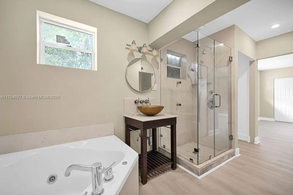 Spacious and updated 3-bed, 3-bath home on a large corner lot in Biscayne Park. Featuring a new kitchen with granite counters and stainless steel appliances, luxury vinyl floors, and a bright open layout. Relax in the oversized Florida room with wood-beamed ceilings and views of the private backyard oasis with pool and plenty of entertaining space. One primary suite includes spa-style bath with soaking tub and glass shower. Enjoy mature trees, peaceful surroundings, and easy access to parks, shops, beach, and major roads. Second primary suite can be used as an ADU with its private parking, entrance, and living area. Don’t miss this opportunity and make your appointment today.