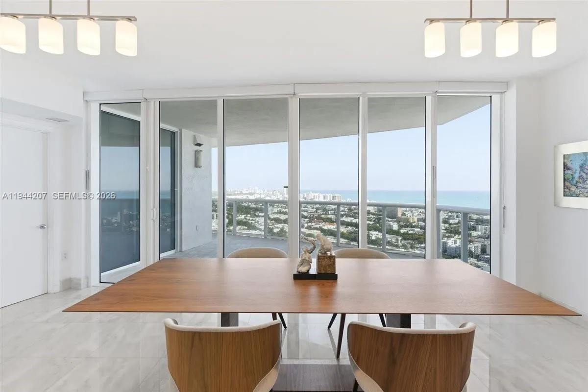Welcome to 180 degrees of unobstructed views of South Beach, with daily sunrises over Atlantic Ocean and panoramic sunsets over the Miami skyline from 2 spacious balconies. This 3 bedrooms apartment has a private elevator and foyer, Carrera Marble floors, open kitchen, SubZero and Miele appliances distributed in 3,284 sqft. The primary suite has two oversized walk-in closets & spa-like bathroom. The building offers all amenities with pools overlooking the bay, tennis court, private Italian restaurant, concierge, gym, 24-hour valet and reception. Located South of 5th with walking distance to South Beach’s finest restaurants, beach and parks.