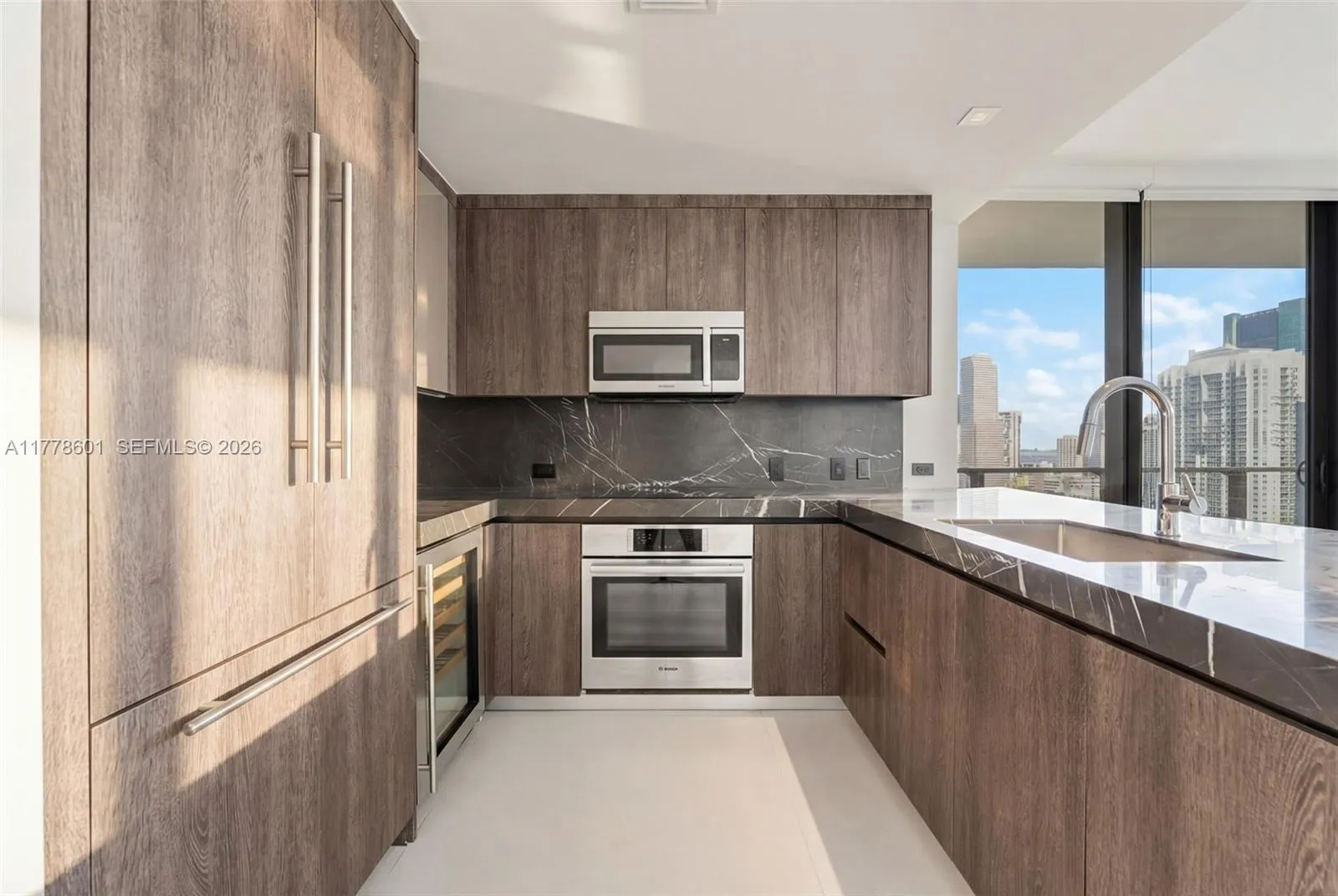 Indulge in this exquisitely reimagined 2/2.5 residence at The Rise Brickell City Centre that offers sweeping sunrise views over Biscayne Bay & the Miami skyline with floor-to-ceiling windows & a generous wraparound balcony. Every detail has been curated to perfection—from the grand 48×48 Gubi porcelain tile flooring to the sleek, modern kitchen with bespoke Italian cabinetry, honed marble countertops, Bosch appliances. The spa-inspired primary bathroom is a masterpiece in design, featuring a freestanding soaking tub & luxurious 120×120 Eco Ceramics wall tiles. Immerse yourself in a lifestyle of indulgence with exclusive access to 5-star amenities: a fitness center, heated pool, valet, Hammam spa, steam room, & more—just steps from the world-class shopping & dining of Brickell City Centre.