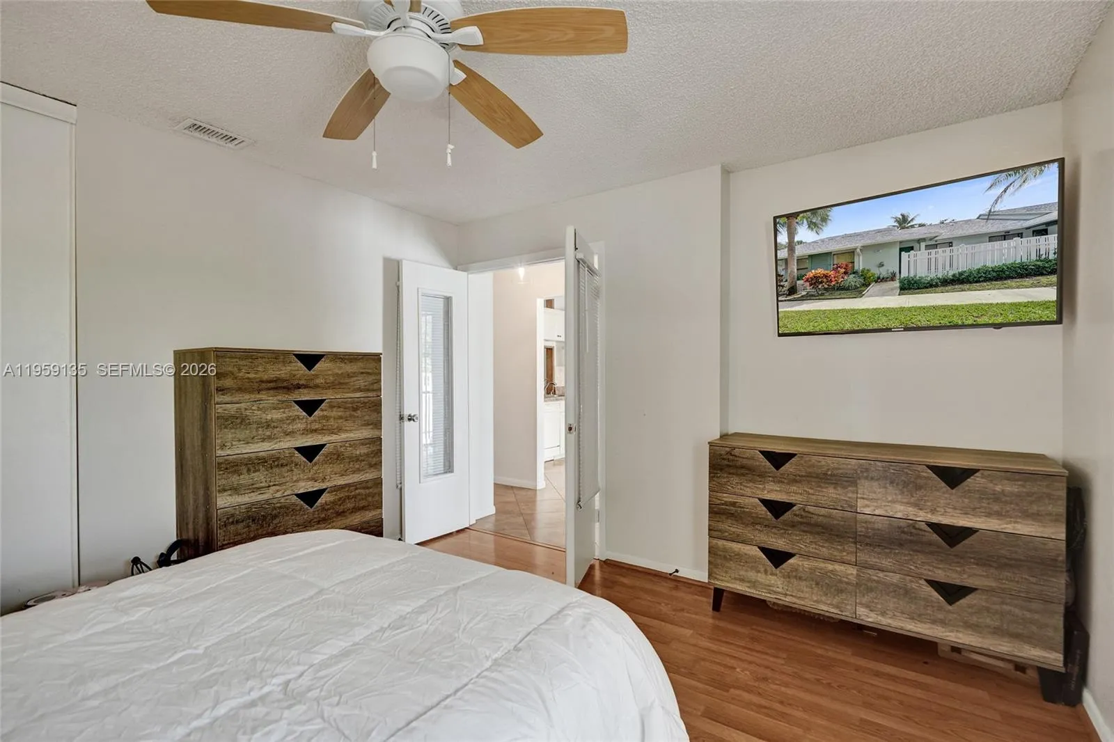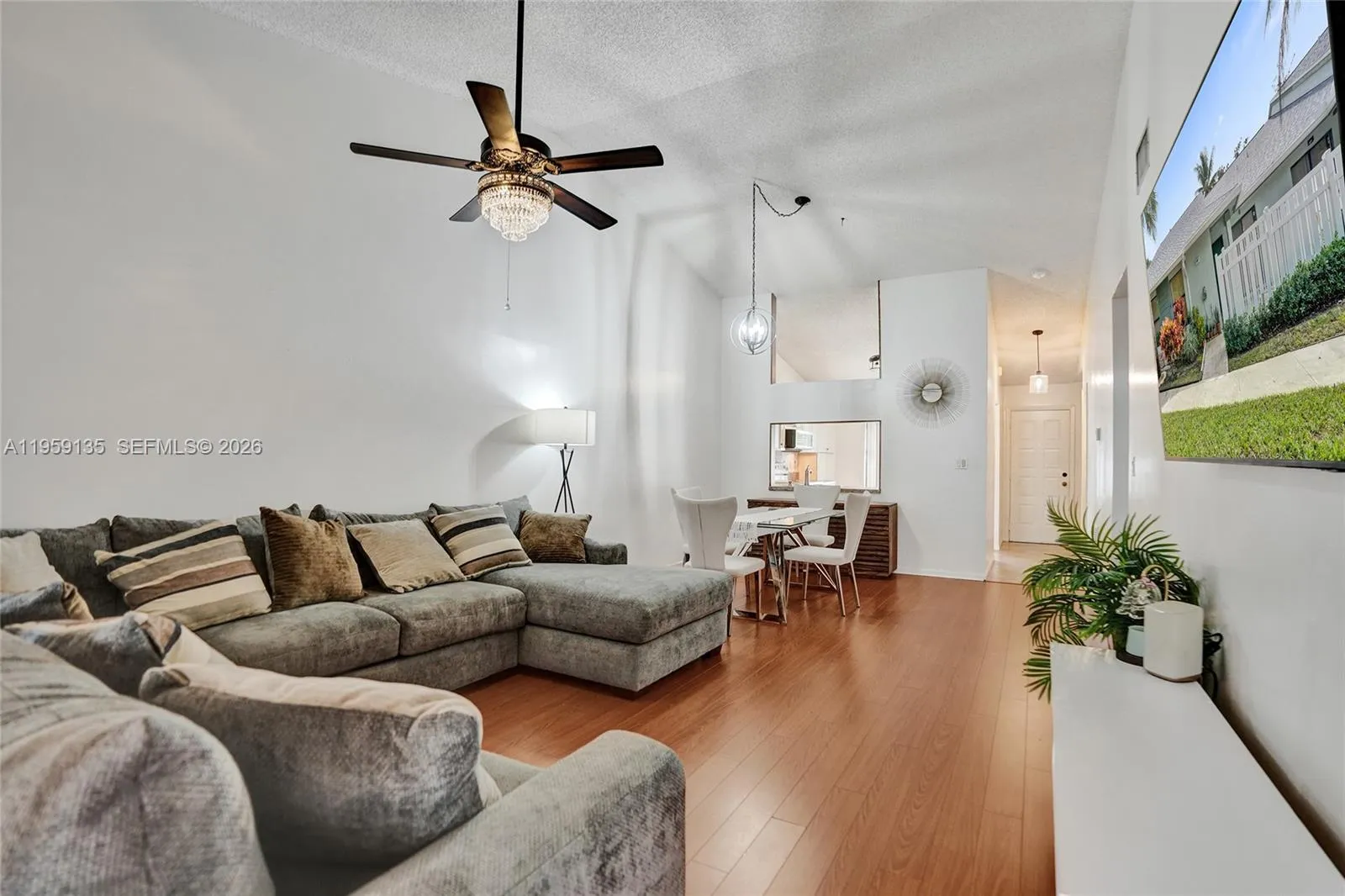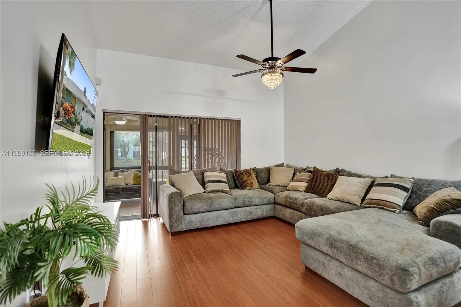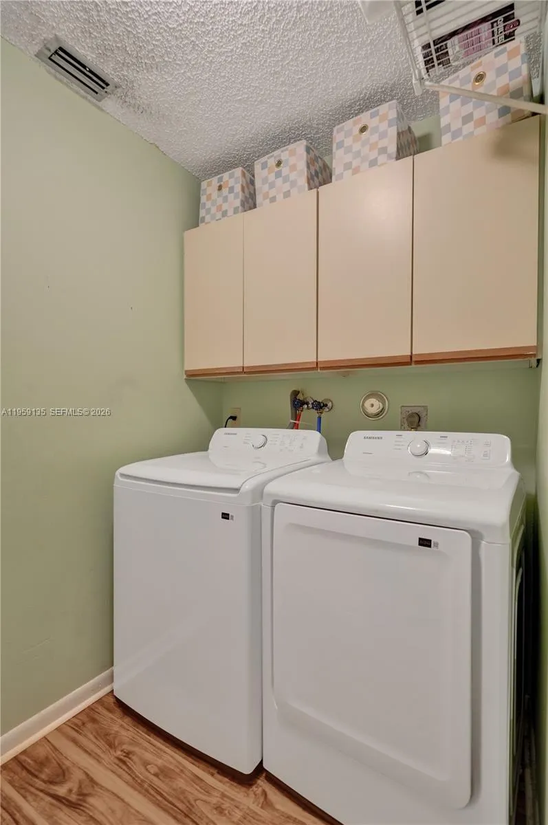 Beautifully maintained 2-bedroom, 2-bath villa located in the highly desirable Township at Karanda Village, ideal for downsizers or seasonal residents. This single-level home offers a bright, open-concept living and dining area with vaulted ceilings and a combination of tile and wood flooring.rnrnThe kitchen features ample cabinet space, a stainless steel refrigerator, and a courtyard entry that allows for excellent natural light. The primary suite offers peaceful lake views, a walk-in closet, and a private bath. The second bedroom is spacious and versatile, perfect for guests or a home office.rnrnEnjoy the enclosed patio with windows and roll-down shutters, offering tranquil water and garden views. The home features a new roof, newer A/C, full-size laundry room, and access to resort-style amenities. Water and cable are included in the maintenance, providing comfortable, low-maintenance South Florida living.