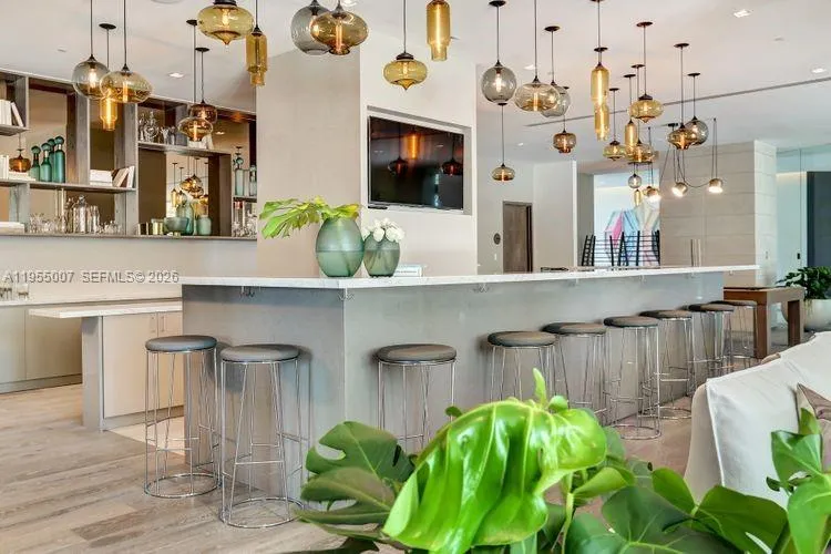 Paraiso Bay-Edgewater Miami Waterfront District: Beautifully remodeled 1-bedroom, 1.5-bath turnkey furnished corner residence with dramatic bay views and exposures to both the East and northwest. This impeccably designed unit features new full-wall custom built-in cabinetry with entertainment center and bar, a new kitchen island and cabinetry, custom wall finishes, recessed lighting and power blinds throughout. Includes one assigned parking space, plus optional valet services with ten (10) eight-hour visitor passes per month.rnrnParaiso Bay is part of the Paraiso Bay Master Association and offers an unparalleled lifestyle with a spectacular two-acre amenity deck highlighted by a 100-foot diameter circular resort-style pool surrounded by lush landscaping, private bungalows, poolside dining, and towel service. Residents enjoy three full floors of world-class amenities, including tennis courts, bowling alley, multiple indoor and outdoor kitchens, putting green and golf drive simulator, game and club rooms, cigar and wine lounges, state-of-the-art fitness center, indoor and outdoor spa, private theater, Pilates and yoga studios, curated classes, and vibrant community events.