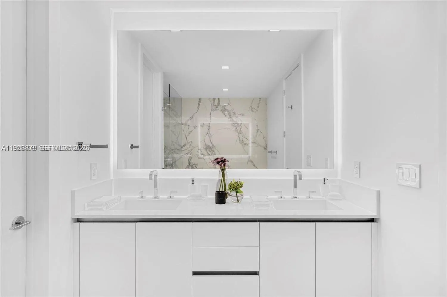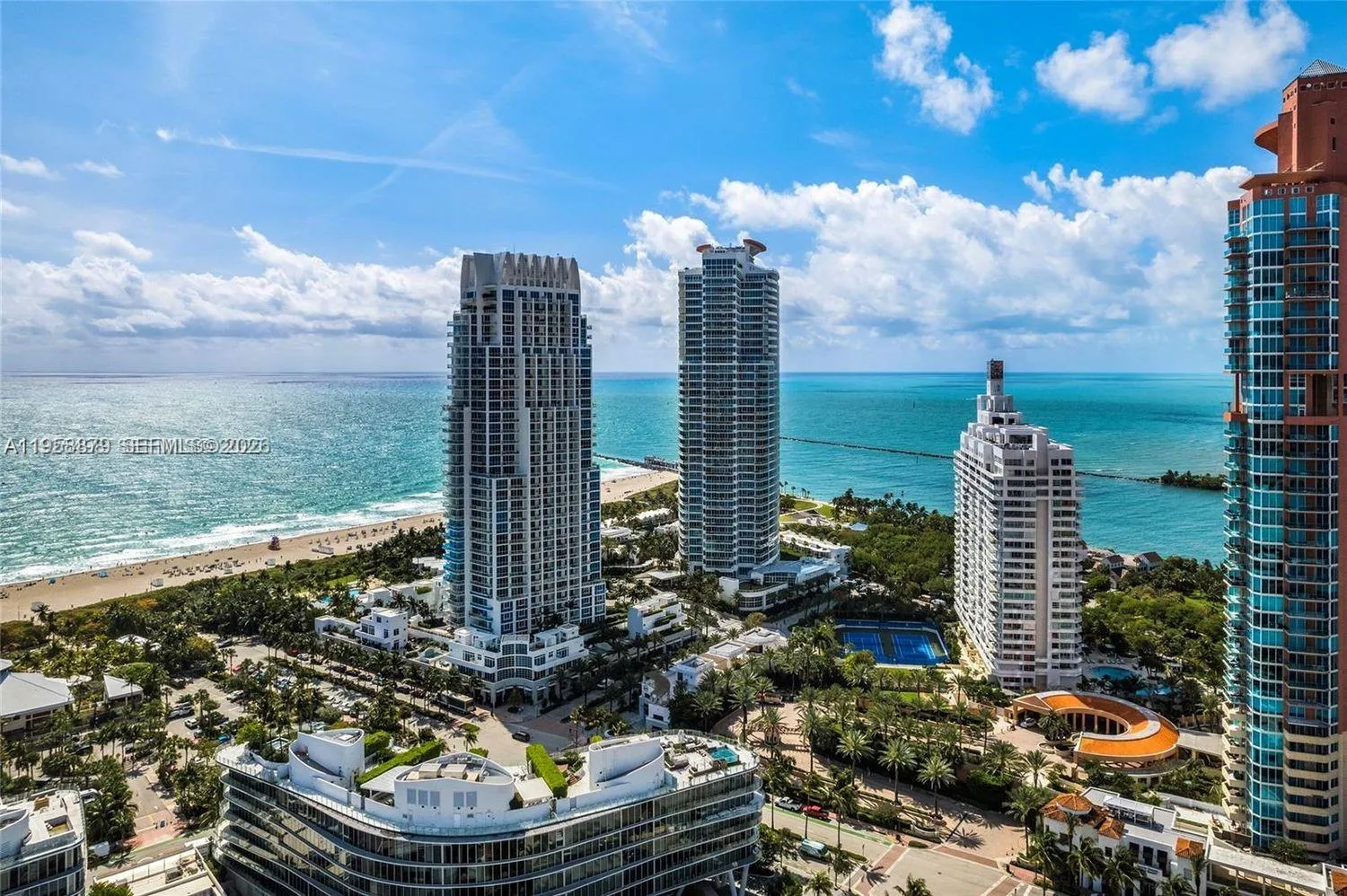 This impeccably designed four-level townhouse at Continuum offers refined coastal living with thoughtfully curated interiors and seamless indoor-outdoor flow. The top floor, entry level welcomes you into expansive living and dining areas that open to a private terrace, showcasing partial ocean and city views—ideal for entertaining or quiet evenings at home. Off the main dining area, a sophisticated chef’s kitchen is outfitted with top-tier, WiFi-enabled Thermador appliances and an elegant marble island.rnrnThe third level is dedicated to a serene primary retreat, complete with a private terrace, custom-designed closets, and a spa-inspired bathroom with a glass-enclosed shower and soaking tub. A powder room is also conveniently located on this level. The second level hosts two guest bedrooms, each with its own en-suite bath and access to a shared terrace, offering comfort and privacy for guests or family. On the ground floor, enjoy a full laundry room, direct access to the outdoor common areas, and two assigned parking spaces in the garage. Beautiful Artefacto furnishings and Spanish porcelain flooring throughout elevate the residence with timeless sophistication.rnrnLocated just moments from the beach and within close proximity to Continuum’s world-class amenities, this townhouse offers an exceptional blend of luxury, privacy, and resort-style living.