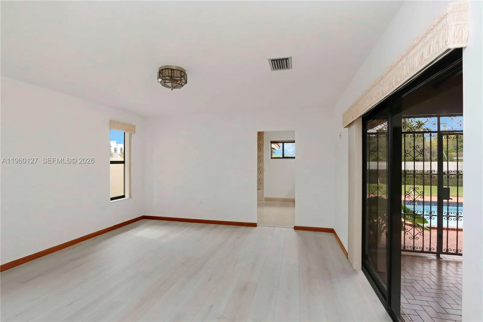 Turn-key one-story home offering more square footage than most homes in the neighborhood. This spacious residence features high ceilings and an open, airy layout throughout. The home has been recently painted and includes new flooring in the bedrooms and family room areas.rnClosets have been redone and freshly painted, adding to the move-in-ready appeal. Bathrooms have been updated with new countertops and cabinets, with the master bathroom featuring updated cabinetry. The pool has been repaired and is ready for enjoyment. Garage door functionality has also been repaired.