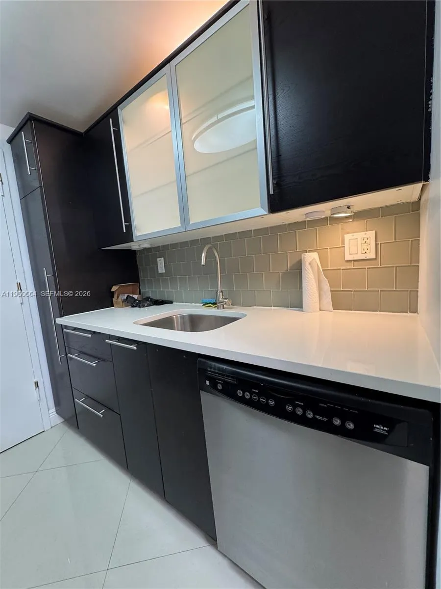Designer decor in a safe and established South Gables location. The building has controlled access systems leading into the building for added security. An assigned parking space and an additional storage room is included in the rent. The building is walking distance from UM campus and the MetroRail station. Easy access to US 1 at lighted intersection. Crown moldings, lighted kitchen cabinetry, gas appliances and a hose station for your plants on the large travertine tiled balcony. Extensive exterior improvements ongoing.