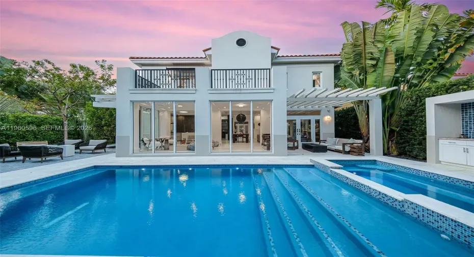 Welcome to 722 Navarre Ave. Striking 2021-built modern residence located on a quiet, tree-lined street in prime Coral Gables, just minutes from Miracle Mile. This thoughtfully designed 4 BD / 4 BA home features soaring ceilings, abundant natural light, and a seamless open-concept layout ideal for both living and entertaining. The chef’s kitchen is outfitted with Sub-Zero & Wolf appliances, custom cabinetry, a walk-in pantry. Floor-to-ceiling glass doors open to a private backyard oasis with a resort-style pool and spa, covered terrace, and summer kitchen, creating effortless indoor-outdoor living. Conveniently located near world-class dining, luxury shopping, parks, golf, and top-rated schools, offering the perfect balance of modern luxury, privacy, and walkability in the heart of Coral Gables.