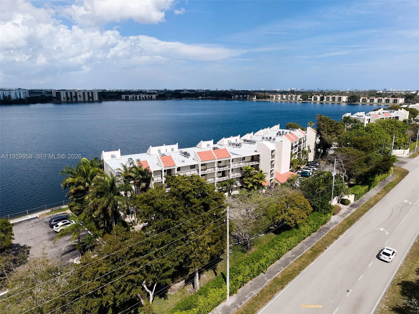 Beautiful 2-bedroom, 2-bath lakefront residence offering serene water views and a spacious private balcony—perfect for enjoying your morning coffee or unwinding at sunset. The thoughtfully designed layout provides comfortable living spaces, abundant natural light, and a peaceful waterfront ambiance throughout. Located in an affordable, well-maintained community, residents enjoy an array of resort-style amenities, including three sparkling swimming pools, a fully equipped fitness center, clubhouse, tennis and basketball courts, and scenic picnic areas ideal for relaxing or entertaining. On-site management and 24-hour guard-gated security provide added convenience and peace of mind. Cable and internet are included in the maintenance fee, and small pets are welcome. Enjoy the unique perk of on-site restaurant service available on weekends and special occasions. Additionally, this building shares the same power grid as the nearby fire station, allowing for quicker power restoration during storms or outages. The unit features partial accordion hurricane shutters on the front-facing windows (kitchen and front bedroom). The primary bedroom window and both balcony sliding glass doors (living room and bedroom) are not equipped with shutters. Whether you’re looking for a full-time residence or seasonal retreat, this lakefront gem offers comfort, security, and exceptional value.