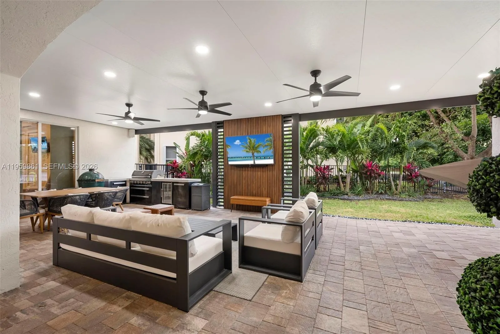 Spectacular 5 bedroom, 4 bath waterfront residence located in the prestigious gated community of Biltmore Estates at Monarch Lakes. This modern yet inviting home welcomes you with serene lake views, abundant natural light, and a thoughtfully designed, expansive layout. The main level features a full bedroom and bath, along with a private guest house with full bath, ideal for visitors, a home office, gym, or retreat. Designed for both everyday living and entertaining, the home features a spacious courtyard with room to build your dream pool and beautiful outdoor covered patio overlooking the water, ideal for relaxing or hosting guests. Inside, bright and airy living spaces with high ceilings are enhanced by a warm electric fireplace, while a thoughtfully designed coffee station adds both style and everyday convenience, perfect for enjoying peaceful mornings with lake views. Upstairs, the oversized master suite offers dual walk-in custom closets, a spa-inspired bath with soaking tub, and a private balcony with unobstructed water views and an additional room which would make the perfect office or nursery. Additional highlights include tile and wood flooring throughout, a laundry room with sink, panel shutters, new roof (2025), three newer A/C units (2023/2024), and a two-car garage with built-in cabinetry and ample storage. Community amenities include tennis, basketball, pool, and playground. Luxury waterfront living at its finest.