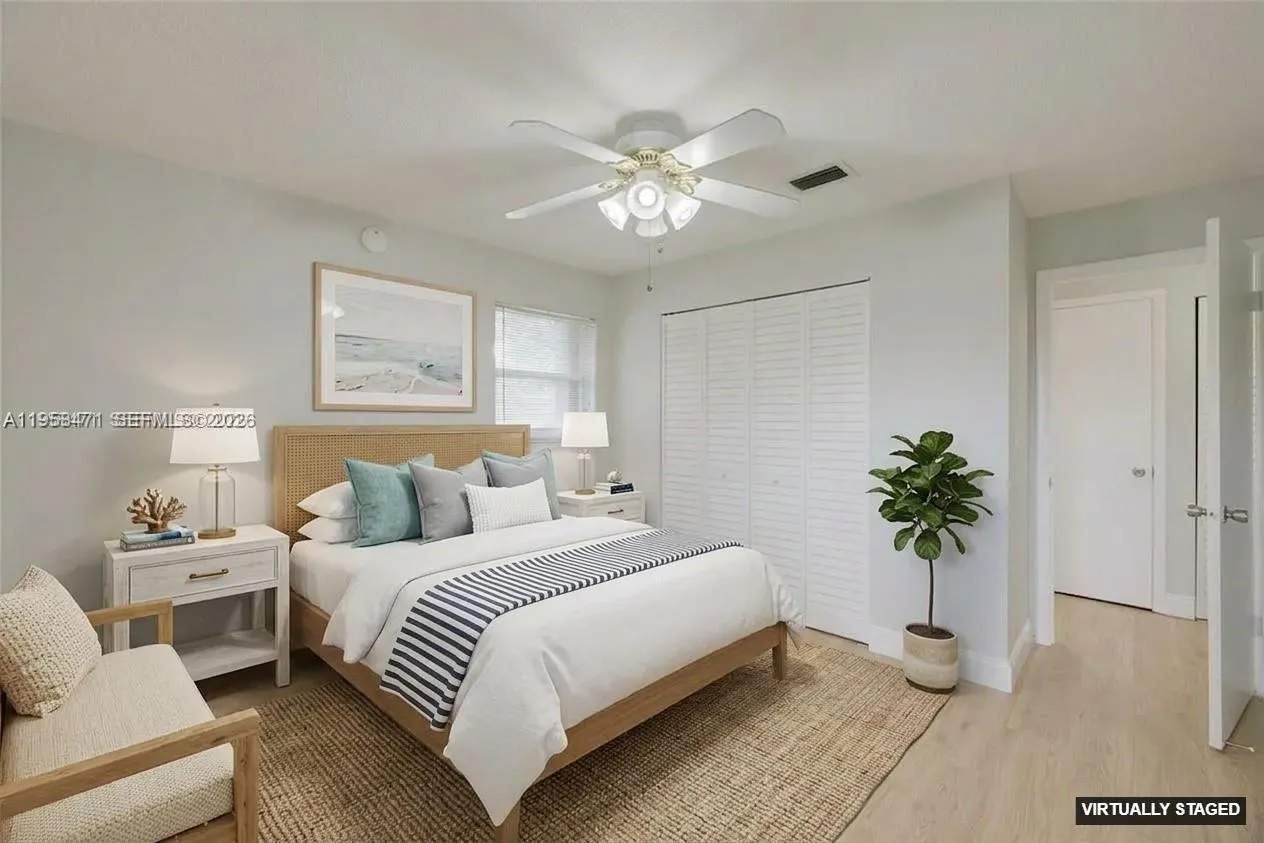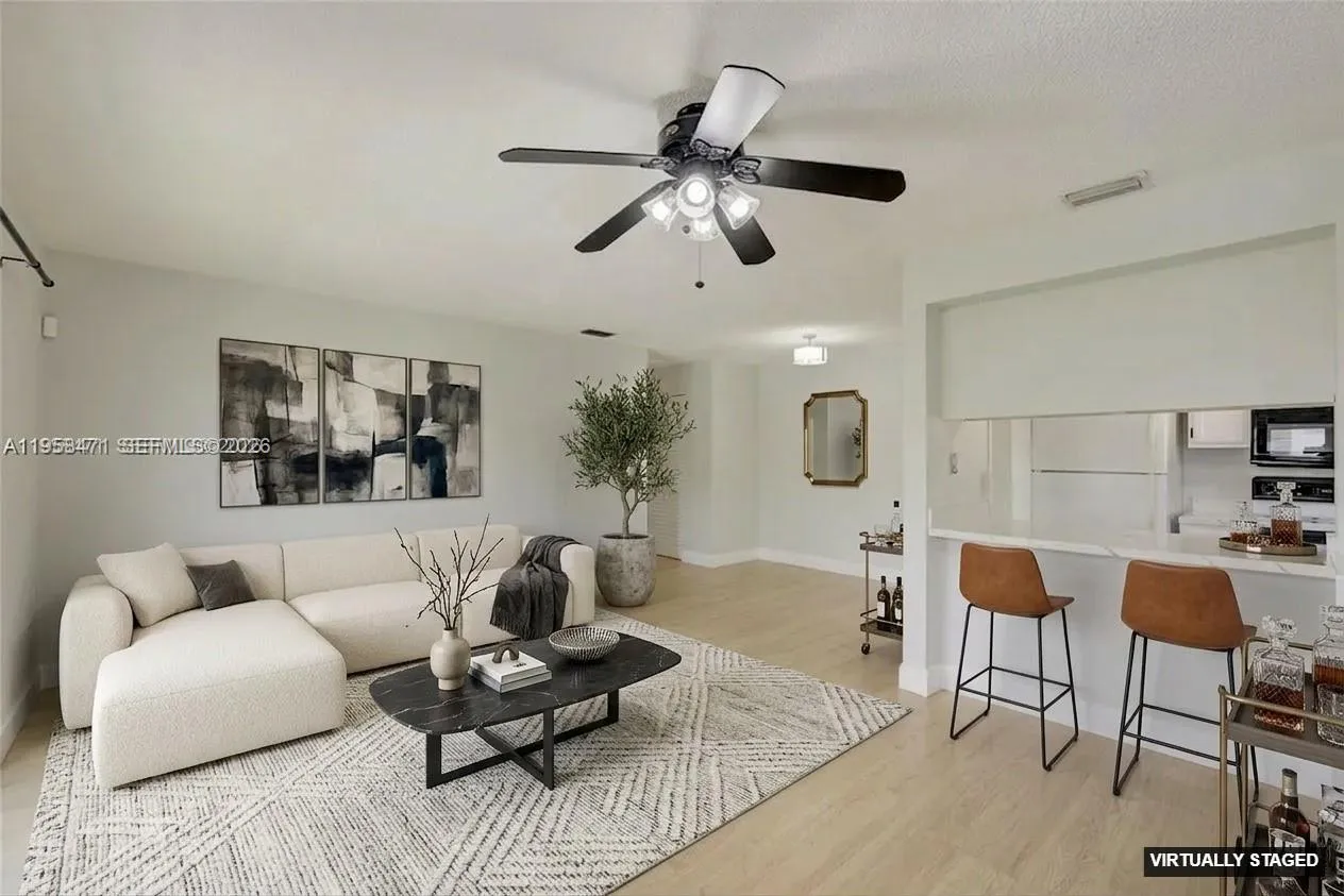 Cozy and well-maintained 2BD/1BA condo with a 1-car garage located in the desirable Forrest Villas community in Coral Springs. All ages welcome. This inviting unit features a functional layout with foyer entry leading to the second floor, laminate flooring throughout, and abundant natural light. Enjoy a full-size washer and dryer inside the unit, ample storage, and generously sized bedrooms with spacious closets. The bathroom is well maintained, and the private balcony provides a comfortable outdoor space. Impact windows and doors add peace of mind. The covered shared garage includes an automatic door opener and can be used for parking or storage. Conveniently located near schools, dining, and shopping. A Must See opportunity.