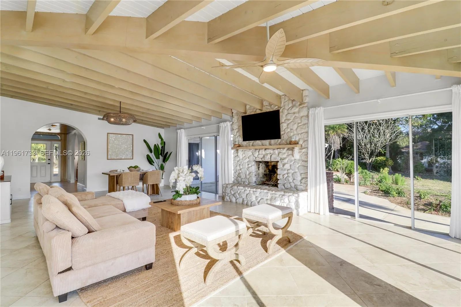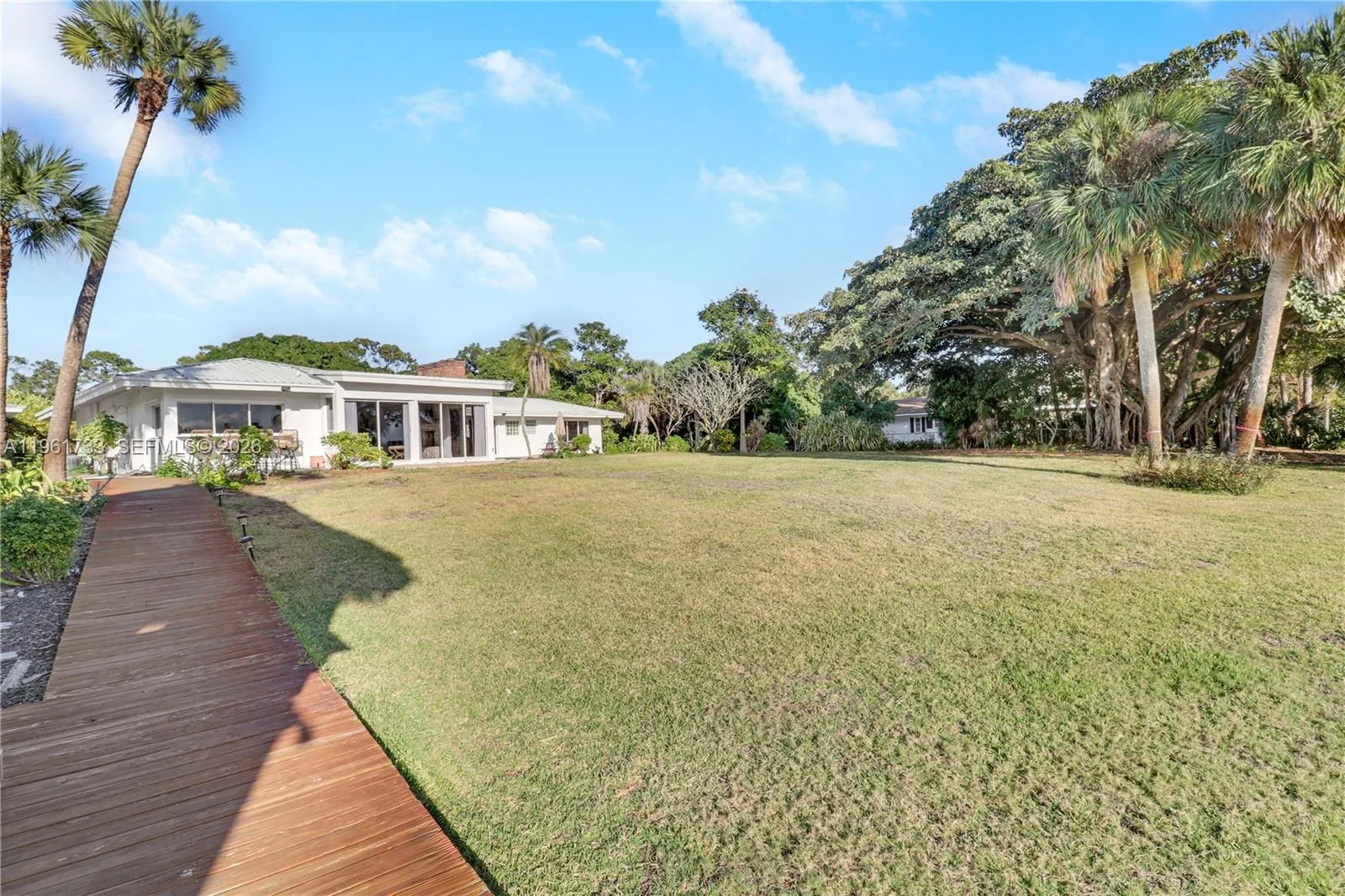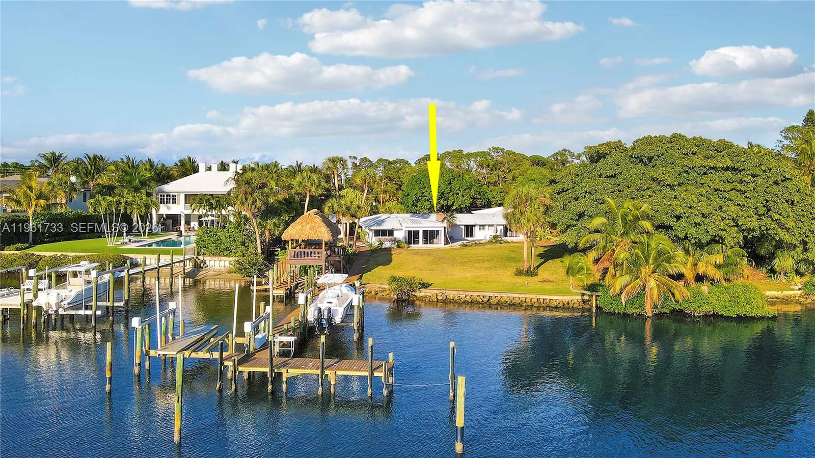 Experience classic Old Florida waterfront living on one of Jupiter’s most desirable streets. Set on approximately 1.5 acres with an impressive 185 feet of water frontage, this charming single-story 3-bedroom, 2-bathroom residence offers privacy, serenity, and picturesque river views.The home features a warm and inviting coastal cottage interior, with light-filled living spaces designed for both comfort and effortless entertaining. Large windows frame the surrounding water and lush landscaping, creating a seamless connection between indoor and outdoor living. Outdoors, the property is a boater’s dream. Enjoy a private dock, boat lift, and Tiki hut, providing direct access to the water and endless days on the river. A stunning mature banyan tree anchors the backyard, offering shade and a truly special sense of place. The expansive grounds provide ample space to relax, entertain, or simply enjoy the peaceful waterfront setting.