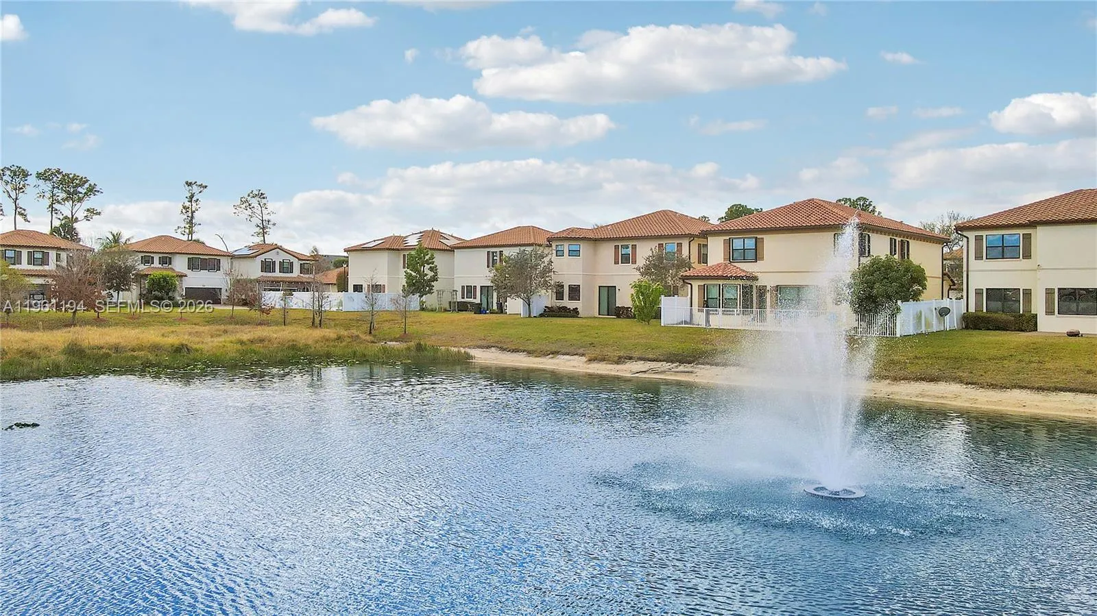Beautiful Mediterranean-Style Lakefront Home! Built in 2016 and situated on the large lot, 6900 square feet, this move in ready 4 bedroom, 3 bath home offers stunning lake views and plenty of room to add a pool.rnDownstairs you’ll find high volume ceilings, one bedroom with a full bath—perfect for guests or multi generational living. Upstairs an oversized primary suite with a large bathroom tub/shower.rnThe kitchen features quartz countertops, a kitchen island, and a cozy breakfast area overlooking the water.rnWith a two-car garage, modern finishes, and an unbeatable lakefront setting, this home blends comfort, style, and space in one exceptional property. Community pool , gym, children’s playground.