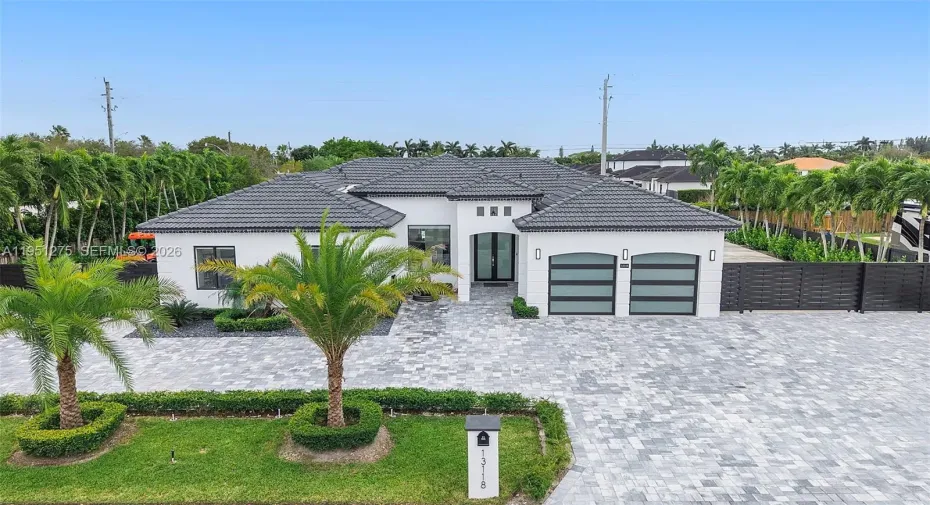 This beautifully updated pool home features sleek white porcelain tile flooring throughout and soaring high ceilings. The centerpiece of the home is a glass-enclosed wine cellar, ideal for showcasing your collection as well as the kitchen which ties up the space perfectly with extra high cabinets and island great for entertaining. High-impact windows and doors throughout the home create a space with lots of sunlight to enter the home. Outside, enjoy a the heated pool on a cool deck surrounded with high quality pavers, an outdoor kitchen area for gatherings, and a cabana bath for convenience. Plus, with double-wide gated side access on both sides, there’s ample space for your RV or boat. This is the ultimate blend of style, function, and outdoor living!