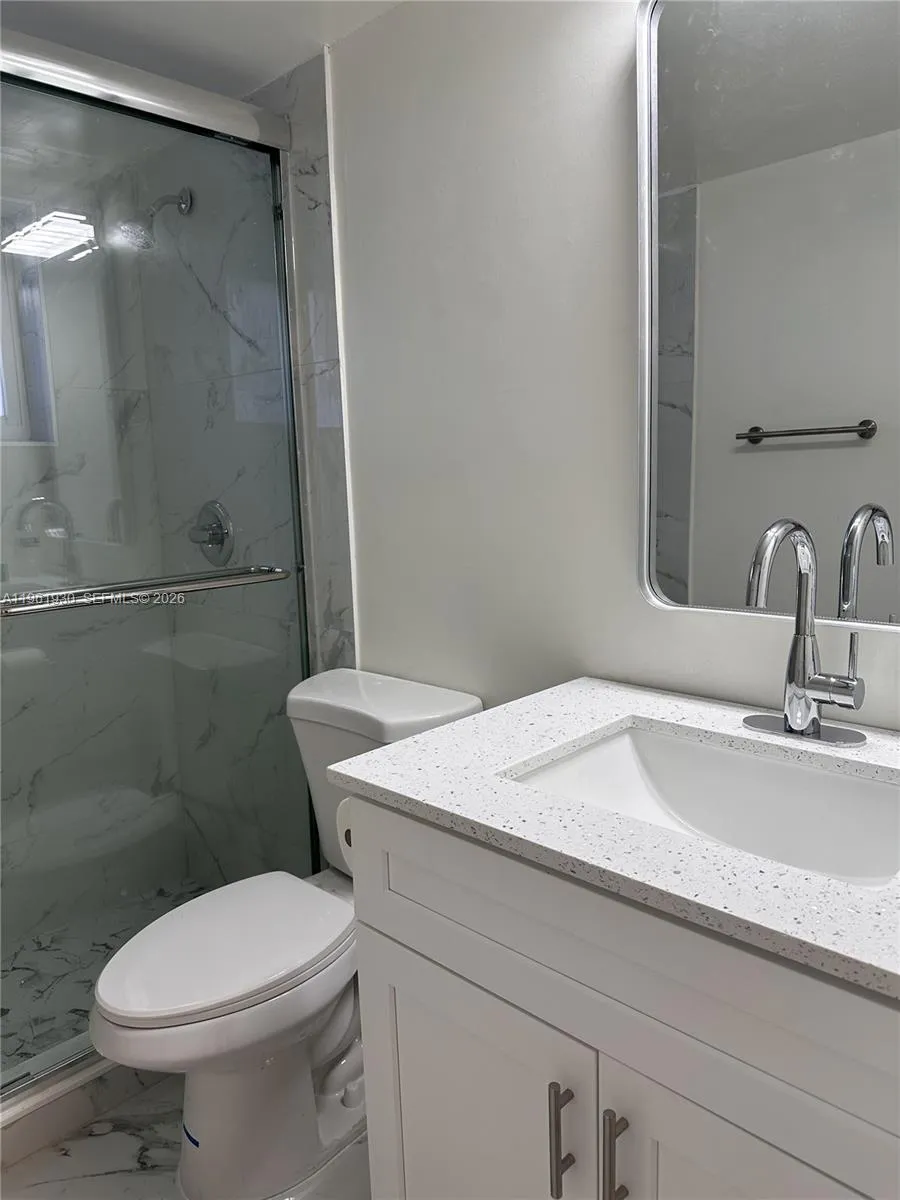 The unit is a 2 Bed/ 2 Bath that has just been completely redone. The unit includes a new and pristine. kitchen (refrigerator, stove, marble countertops and floor), impact windows and door, bathroom (toilet, shower, and sink), roof. There is a coin laundry on the property for the tenants as well. The property is also notable nearby Nova Southeastern university, being just a 7 min drive away. The unit has 2 large bedroom with 2 ensuite bathrooms. Each unit bedroom consists of two separate entrances, providing added privacy and flexibility for shared living.