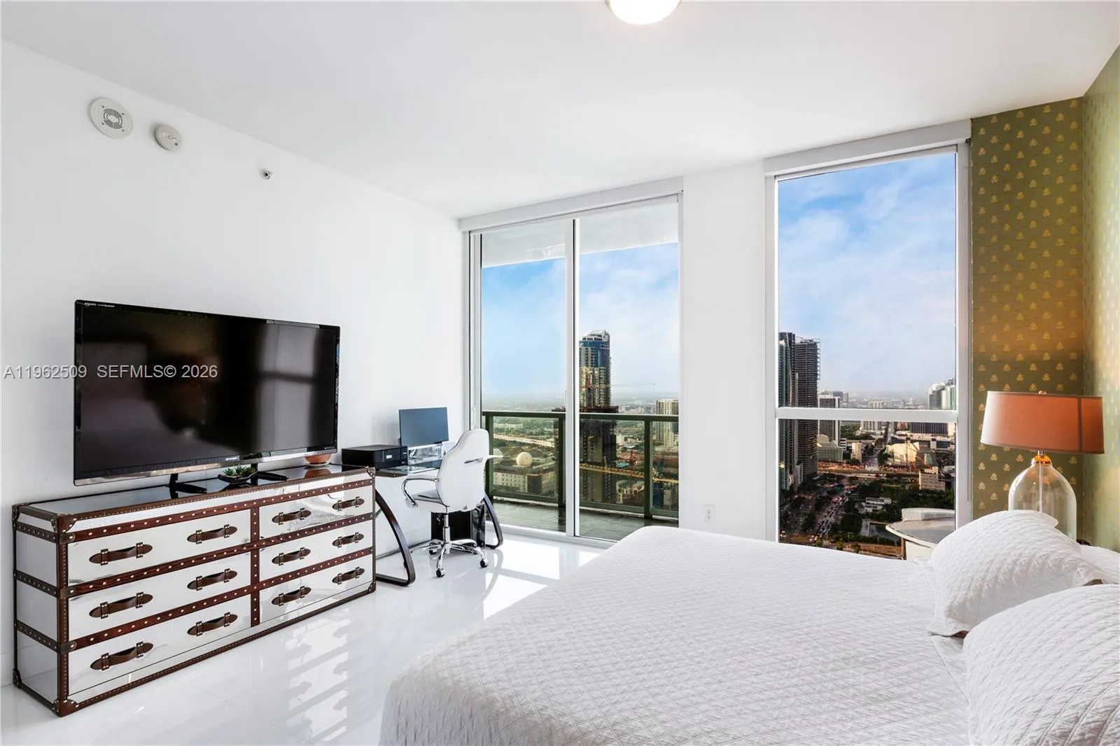 Stunning 2 bedroom 2 bath + DEN high-rise home that entices with open floor plan and panoramic views. Walkingrna direct view of the Bayfront Park Amphitheater with surrounding skyline and the expanse of Biscaybe Bay tornSouth Beach. Fully furnished and impeccably maintained with high ceilings, stone countertops, stainless steelrnappliances and luxurious finishes. Great views from highly desired Viscayne North Tower. Building with high-endrnamenities, including SPA, 4 pools and top of the line gym In close proximity with Brickell, Adrianne Arsht Center,rnPerez Museum – Beach is 15 minutes away as well as Miami International Airport. Please note that there is ongoing construction in the area, which partially impacts the view; however, the view remains open and beautiful.