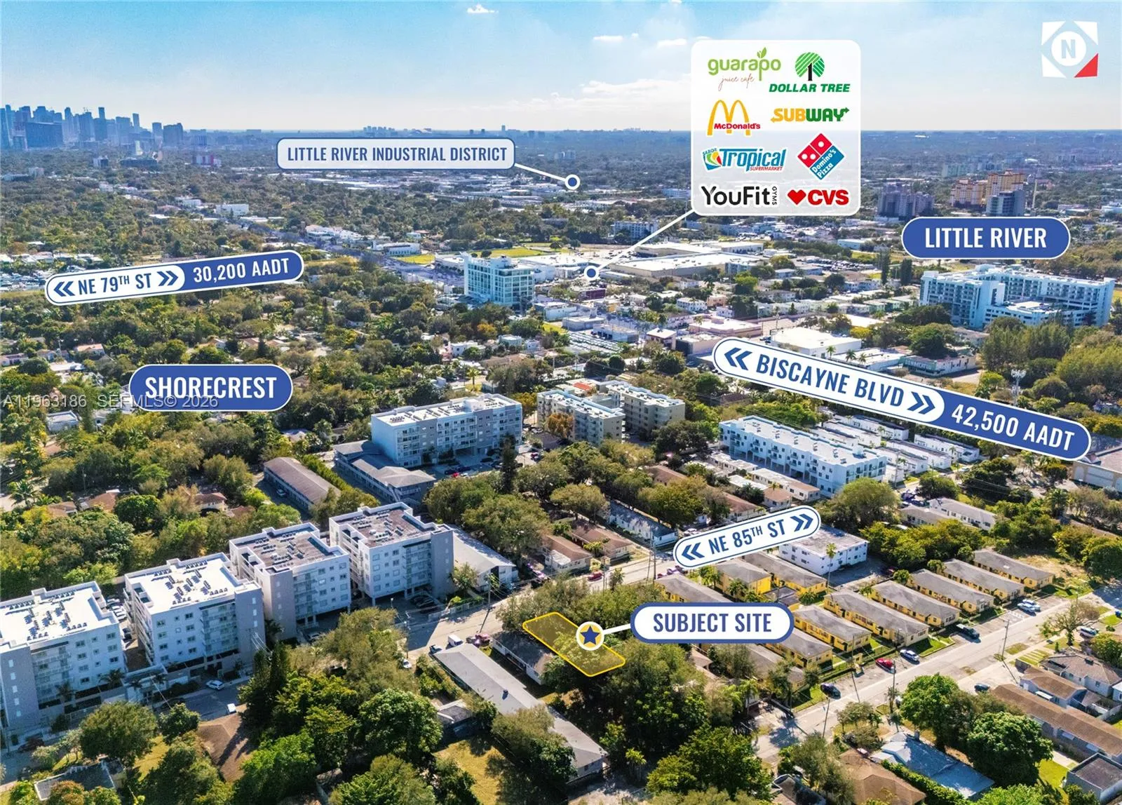 PRESENTING A BLANK SLATE INFILL DEVELOPMENT OPPORTUNITY READY FOR ENTITLEMENTS IN THE EAST-OF-BISCAYNE SHORECREST NEIGHBORHOOD.rnrnWith T5-R zoning in place, this boutique vacant land parcel allows for the development of up to seven (7) residential units across five stories by-right, providing a straightforward framework without the baked-in premium or typology constraints of pre-existing entitlements.rnrnLocated in the desirable Easternmost pocket of the Little River area between high-traffic Biscayne Boulevard and the bay, the property offers the best of both worlds with walkable access to retail, and dining plus unmatched accessibility throughout the region via the NE 79th Street corridor. Surrounded by a robust pipeline of new construction, the site is well positioned to benefit from continued neighborhood momentum, strong absorption, and long-term value creation.