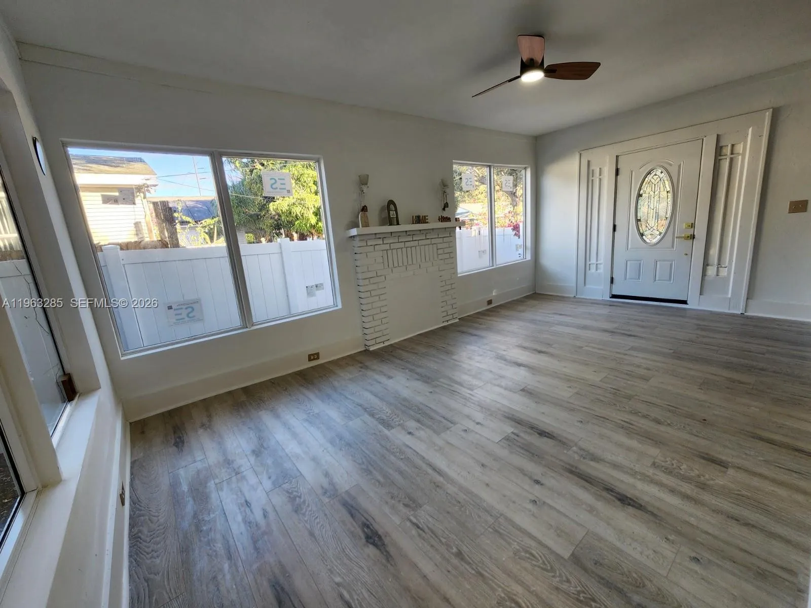 SELLER WILLING TO CONTRIBUTE $14,000 TO BUYER TOWARDS CLOSING COSTS and/or to install a washer and dryer, landscape or any other improvements that the Buyer would like to do (Contribution applies only with a full price offer). ***PRICE REDUCED FOR A QUICK SALE*** Become the owner of this beautiful fully renovated home with 940 sq ft of living space on a 2,827 sq ft lot. It features 3 bedrooms, 1 bathroom, and a spacious living room with a fireplace and new impact windows. Enjoy a brand-new open kitchen and dining area with a stylish island, modern countertops, gold finishes, and direct access to the fenced in backyard. The bathroom showcases a contemporary design with Carrara porcelain tile, a glass shower door, and gold accents. Each bedroom includes its own closet. The home has been updated with new vinyl waterproof laminate wood like flooring, fresh paint throughout, new doors, modern lighting, and a new roof was installed in 2023. Central HVAC installed in 2010, Water Heater 2015, , space to install washer and dryer, The exterior features new PVC siding, new PVC fencing, and railings. The property also comes equipped with impact hurricane windows and doors for added safety and efficiency. A new 30” stove and refrigerator are included and will be installed before closing. FHA, VA, Conventional welcome! Seller will consider contributing towards Buyer’s closing costs. Virtual tour video available upon request. Link to YouTube virtual tour video on Realtor remarks.