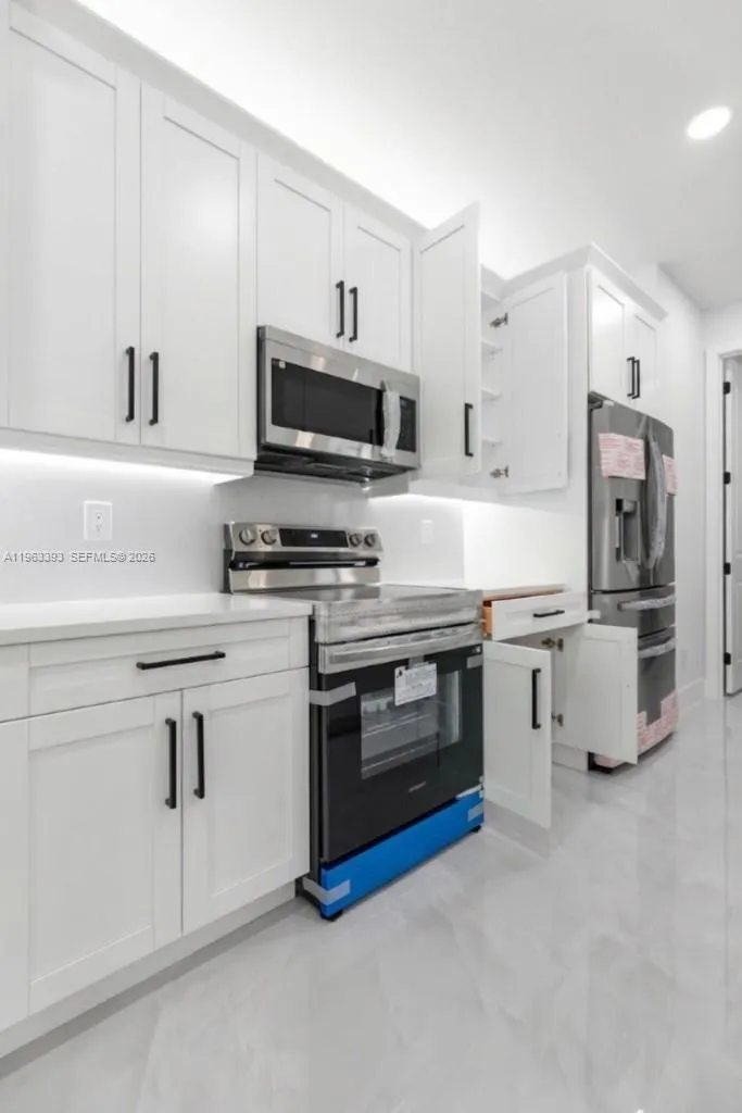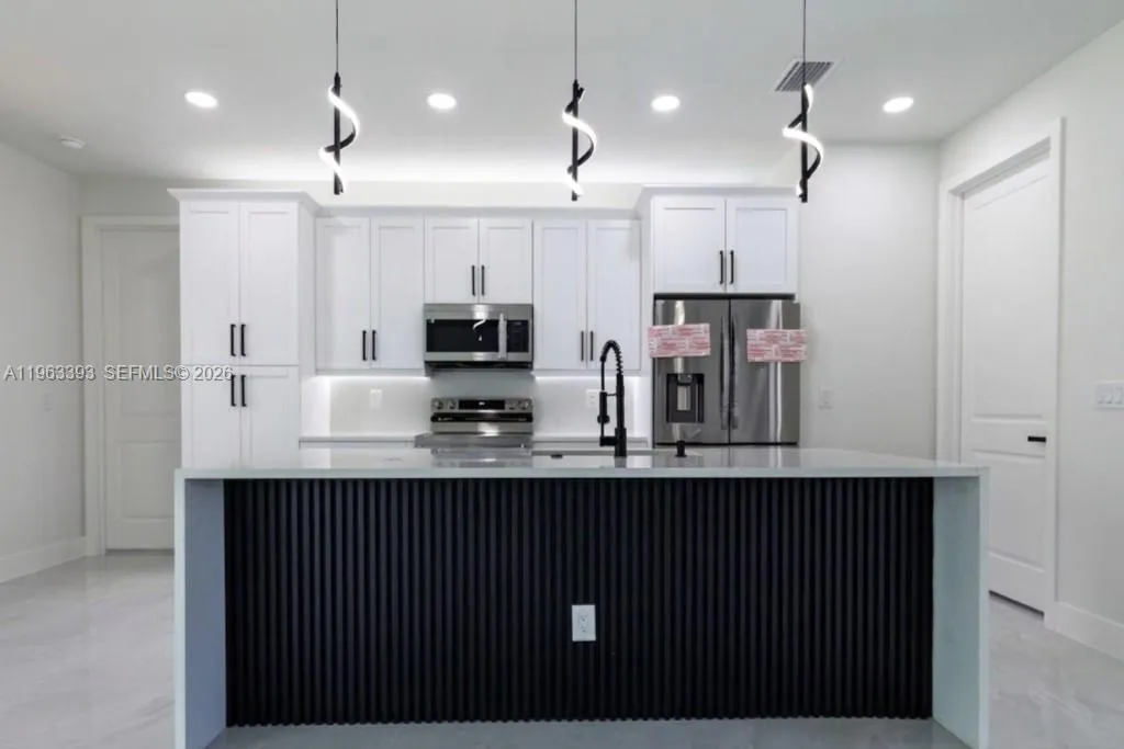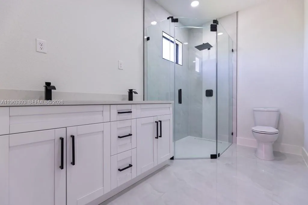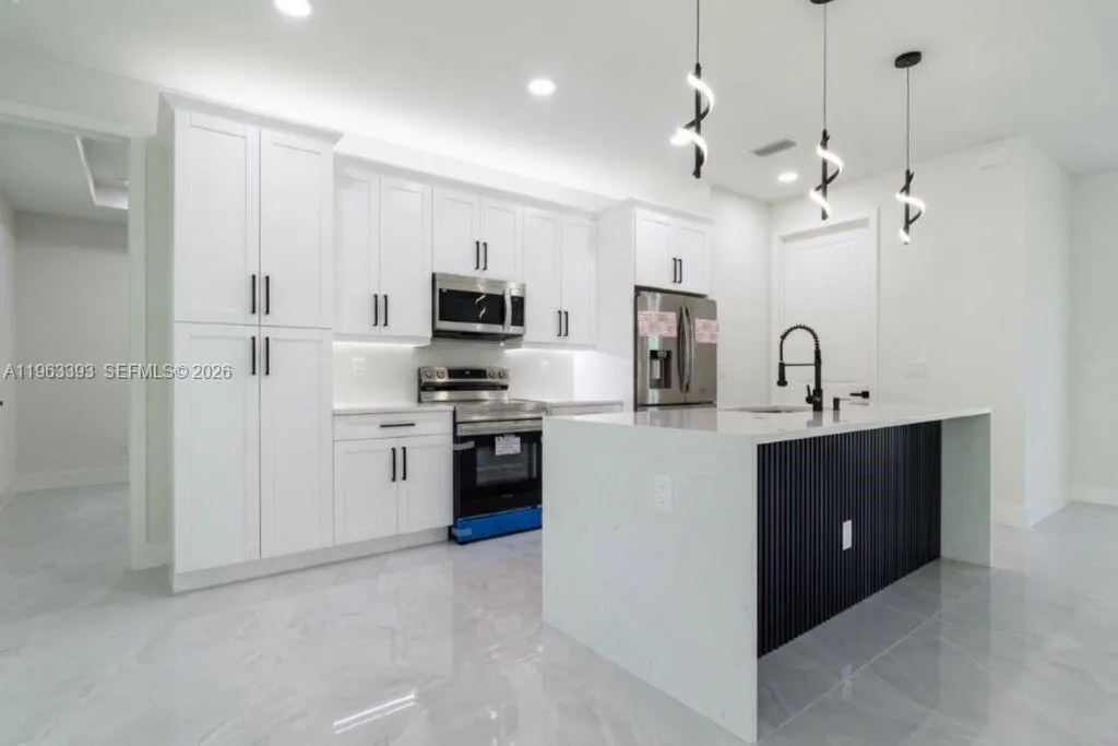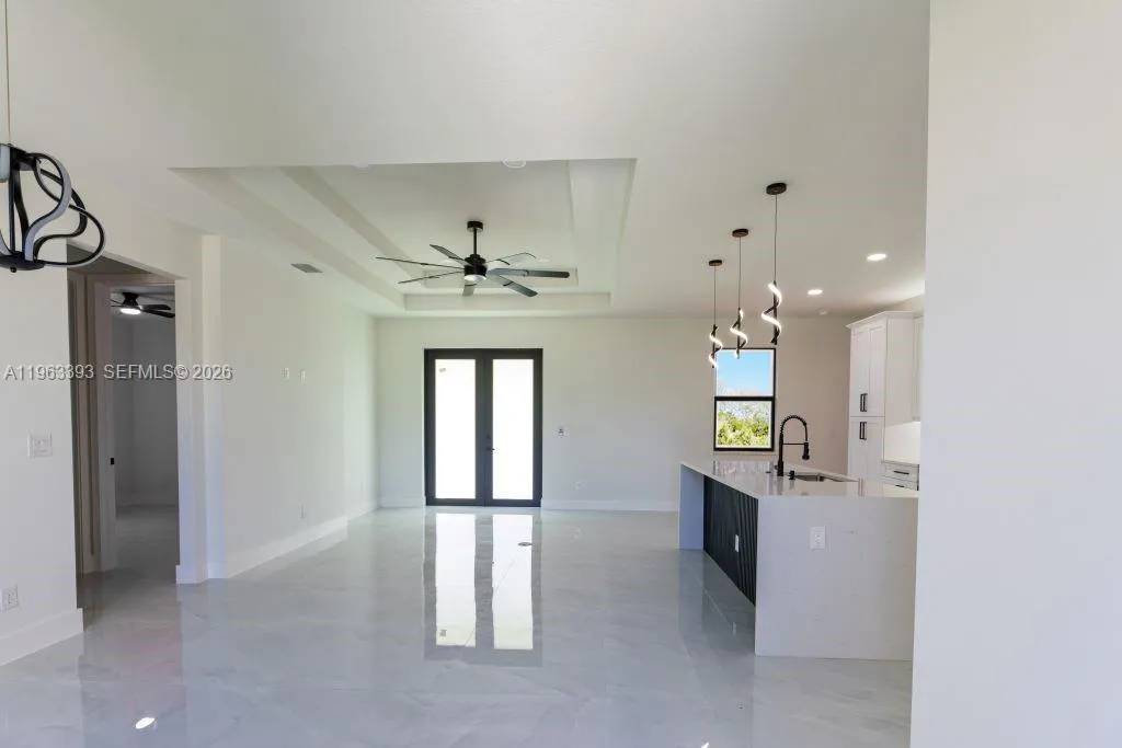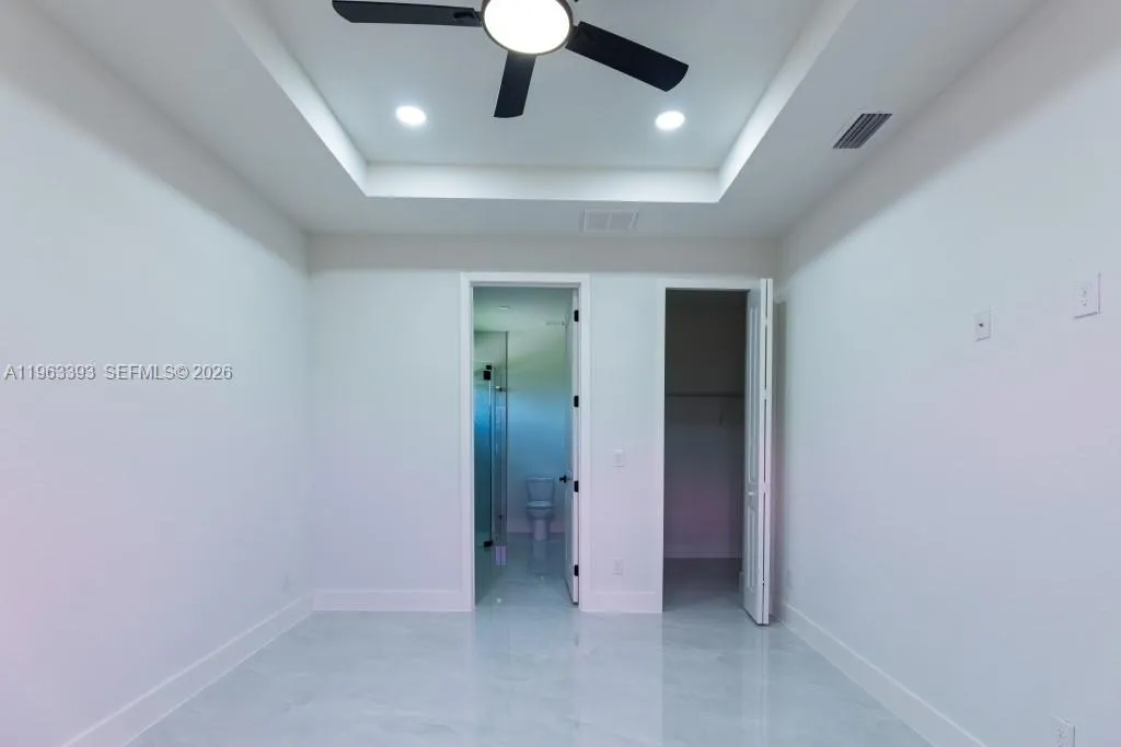 Brand New Construction!rnDiscover this stunning single-family home in Lehigh Acres, perfectly situated on a spacious 0.25-acre lot. This modern residence features 3 bedrooms and 3 full bathrooms, including one conveniently located in the garage, ideal for a future 4th bedroom, in-law suite, or rental efficiency.rnDesigned with quality and comfort in mind, the home offers impact-resistant doors and windows, central electric A/C, and ceiling fans in every bedroom for year-round comfort. The kitchen showcases a large island, ample pantry space, and sleek contemporary finishes, perfect for cooking and entertaining.rnEnjoy peaceful mornings or relaxing evenings on either the front or back porch. Each bathroom is tastefully upgraded with glass shower doors and LED light mirrors, adding a touch of luxury. All closets will include custom storage options, tailored to the buyer’s preferences.rnA perfect blend of comfort, style, and functionality. This home is move-in ready and waiting for your personal touch!