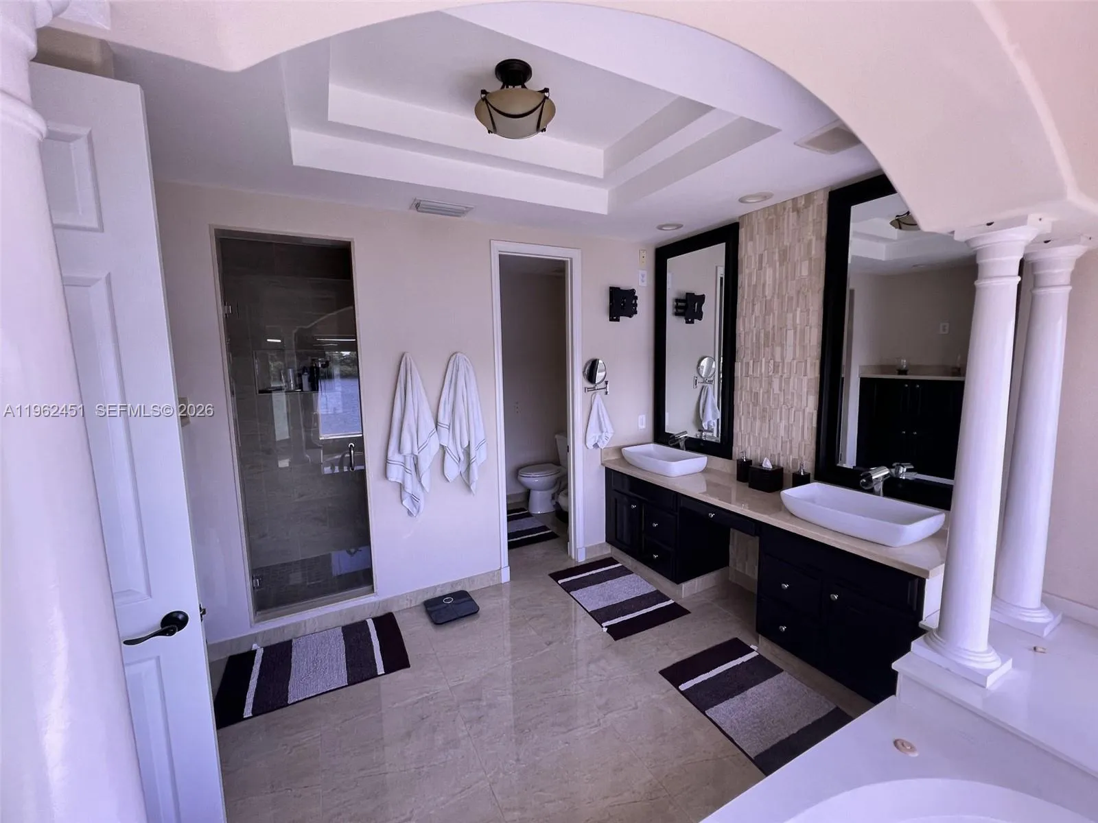 STUNNING 5BR/4BA CASTLE-STYLE HOME WITH POOL ON AN EXPANSIVE WATERFRONT POINT LOT. A grand foyer welcomes you into a striking circular staircase adorned with custom murals. Featuring soaring high ceilings, elegant built-ins, architectural arches, and abundant natural light from numerous windows throughout. The kitchen offers granite countertops, wood cabinetry, and stainless-steel appliances. The oversized primary suite is a true retreat, showcasing large walk-in closets, a spacious bath with decorative columns, and a private balcony overlooking the patio, pool, and breathtaking lake views. Truly one of a kind, situated on a rare lot of over 1/3 acre with approximately 240 feet of lake frontage.