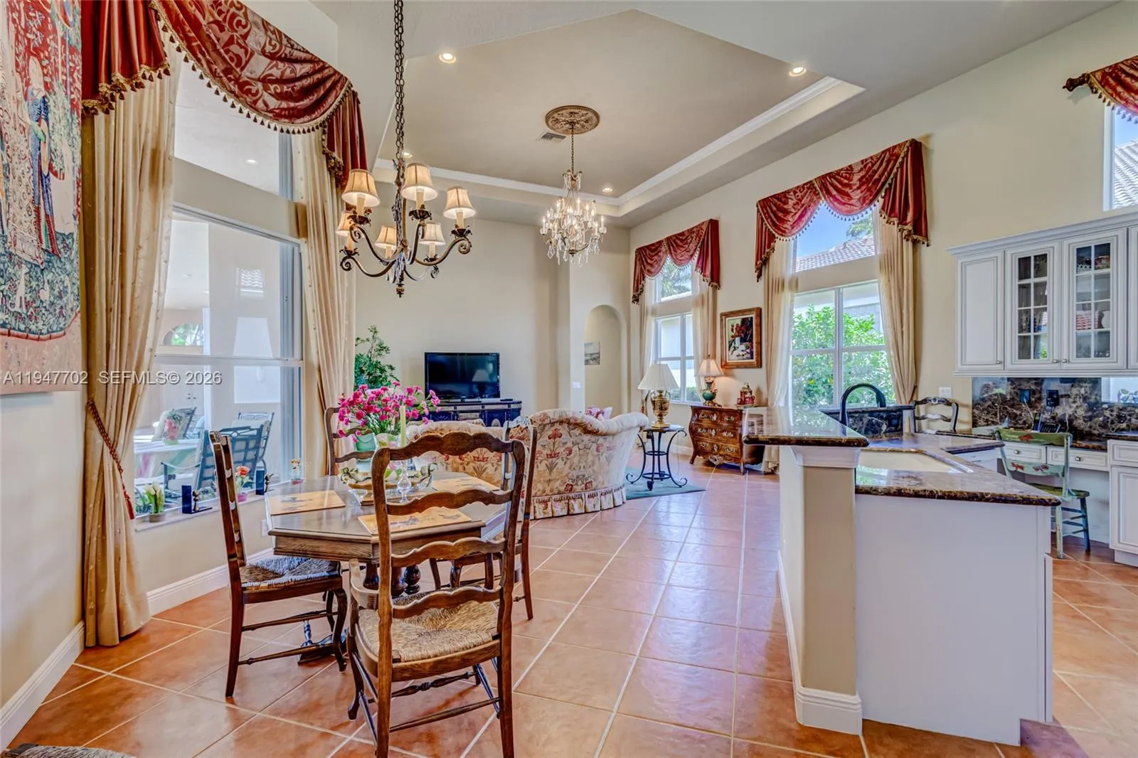 • Interior Features: Bedroom on Main Level, Breakfast Area, Dual Sinks, First Floor Entry, Closet Cabinetry, Walk-In Closet(s), Built-in Features, Garden Tub/Roman Tub, High Ceilings, Pantry, Split Bedrooms, Separate Shower, Dining Area, Separate/Formal Dining Room, Custom Mirrors, Breakfast Bar