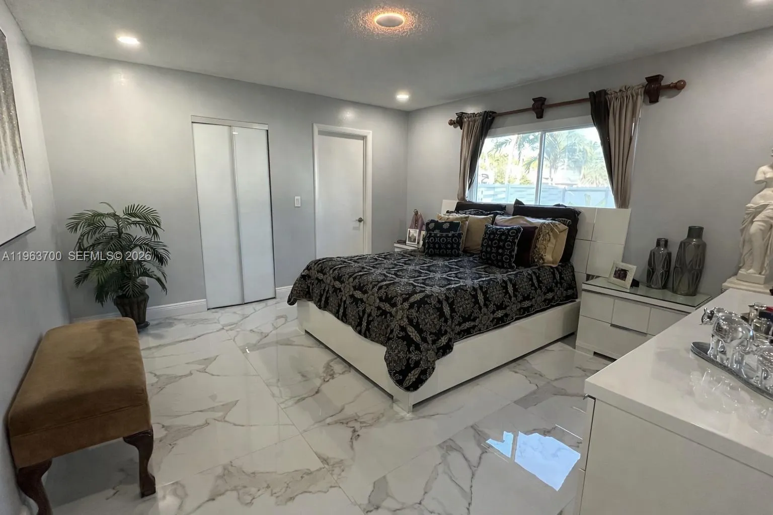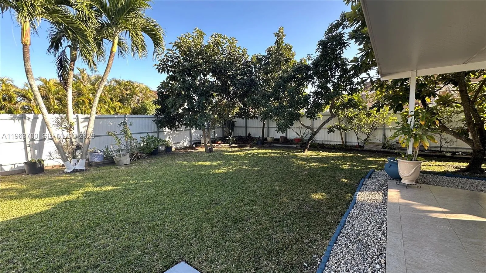 Stunning fully renovated corner home, upgraded with luxury finishes and no expense spared. This beautiful residence features 3 spacious bedrooms and 2 modern bathrooms, thoughtfully designed for both comfort and style. The kitchen showcases premium Samsung appliances and refined details throughout.rnrnThis property is equipped with impact windows, offering enhanced security, energy efficiency, and peace of mind.rnrnStep outside to a breathtaking backyard retreat surrounded by fruit trees (avocado, papaya, mamey, and more) and enclosed by a premium, durable fence that secures the expansive lot. Enjoy a large 8×12 storage shed and ample space to park a boat or additional vehicles. A private well allows you to maintain the lush landscaping without increasing your water bill, while the low quarterly HOA fee of just $100 covers exterior lawn maintenance.rnrnAdditional upgrades include a brand-new roof (2022), whole-house water filtration system, Ring security system with cameras (included), electric blinds with remote control, a cozy fireplace, and built-in Bluetooth audio in the bathrooms.rnrnThis home offers the perfect balance of luxury, privacy, and tranquility — city living with a countryside feel. Showings require 12–24 hours’ notice. A rare opportunity you don’t want to miss.