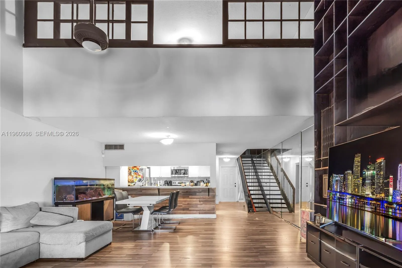 Lakefront 3BD/2BA fee-simple townhouse in Villas West with beautiful water views and direct lake access. Spacious 1,511 SF layout featuring first-floor entry, volume ceilings, ceramic + wood flooring, and an open modern staircase. Large sliding doors bring in natural light and lead to a covered/screened patio—perfect for relaxing or entertaining with serene lake views. Kitchen offers generous cabinetry and ample counter space; full-size washer/dryer in-unit. Community features include BBQ/picnic area and spa/hot tub, community pool, pickleball, clubhouse, plus security patrol. No renovations have been completed in the last 5 years. The roof was renovated approximately 8 years ago. Convenient Pembroke Pines location near shopping, dining, and major highways.