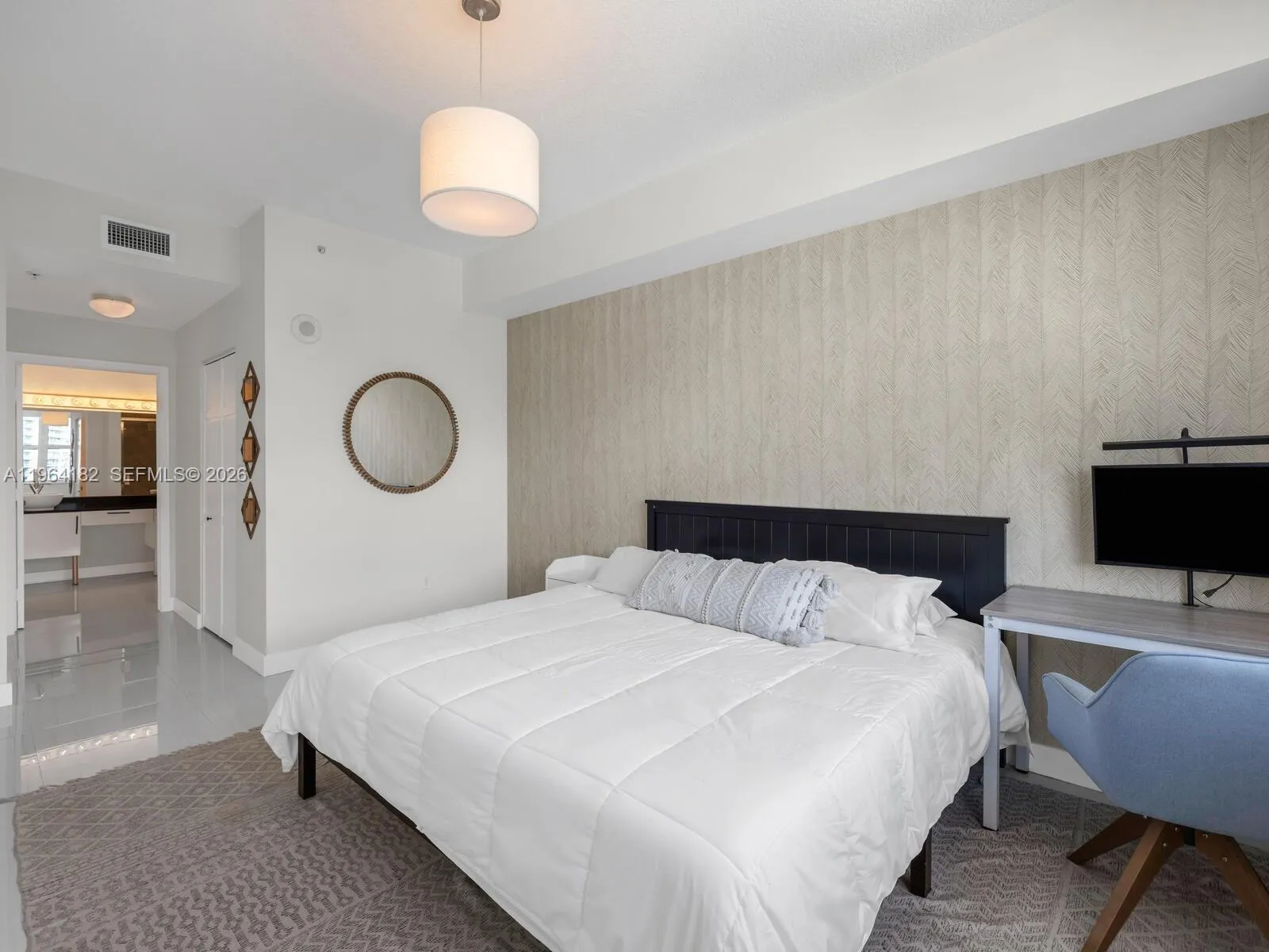 Welcome to The Riverview Flat at Brickell on the River! This rare-find unit offers breathtaking west-facing sunset views over the Miami River and the dazzling Miami skyline. Open, spacious, and light-filled, this residence features upgraded porcelain floors throughout and a large kitchen with ample storage, GE stainless steel appliances, and granite countertops. The expansive living and dining area is elevated by designer wallpaper and modern light fixtures, while floor-to-ceiling impact sliding doors frame stunning water and city views and lead to an oversized balcony—an exclusive feature available in only two lines of the building—offering exceptional space to lounge and entertain. The spacious primary suite is bright with tons of natural light and adorned with grass cloth–inspired designer wallpaper. It includes two closets (one walk-in) and a generous en-suite bath with double vanity and jetted tub. Amazing amenities include: 24/7 reception, security, and valet; two swimming pools; a five-story fitness center and spa with jacuzzi, sauna, and steam room; plus multiple resident lounges and workspaces. All just steps from Brickell’s premier dining, shopping, and entertainment!