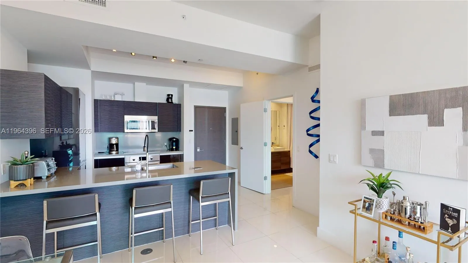 Large 1 bedroom, 1 bathroom unit on a high floor with high ceilings and breathtaking East-facing water and city views! This stunning residence features high-end Bosch appliances, impressive 10+ foot ceilings, and floor-to-ceiling impact glass sliding doors. Enjoy the luxury of a spacious walk-in closet and an assigned covered parking space. The Bond is perfectly located just steps from Brickell City Centre & Mary Brickell Village, offering an array of resort-style amenities. Experience 24-hour security and valet parking, oversize pool with cabana & grills, covered hot tub, sauna & steam room, a business center, a fitness center, a children’s playroom, club room, a library. Walk to shops, offices, restaurants, transit & more.